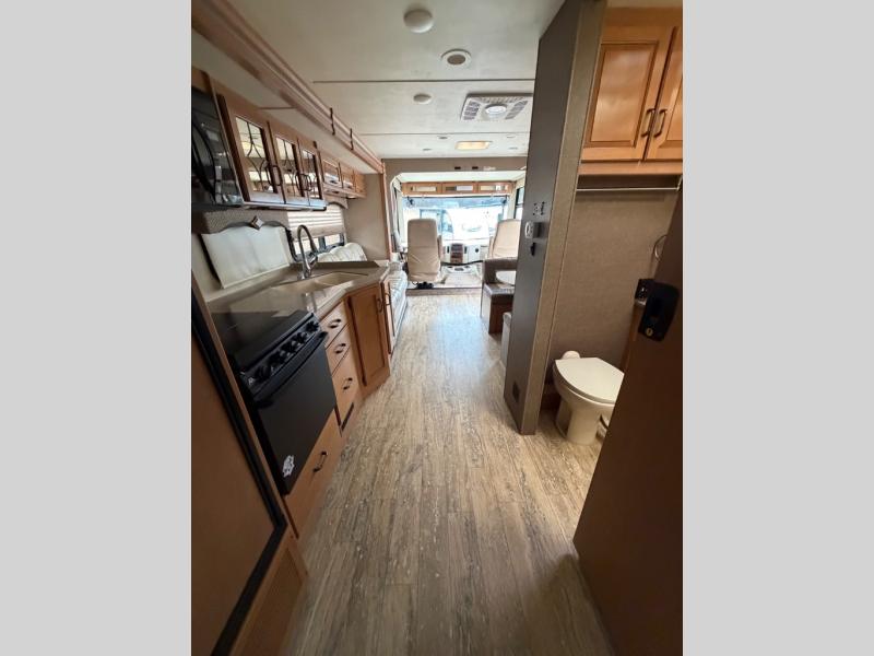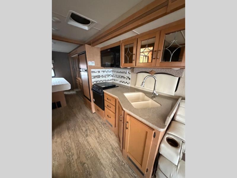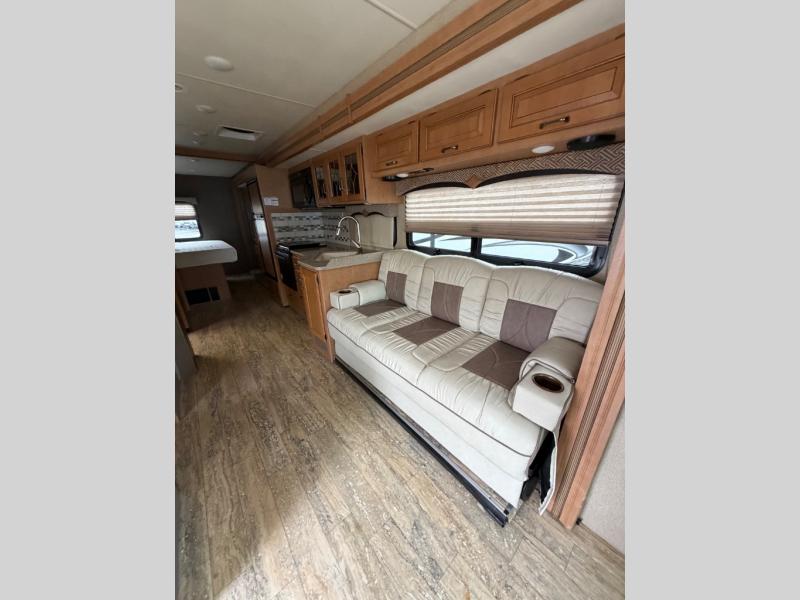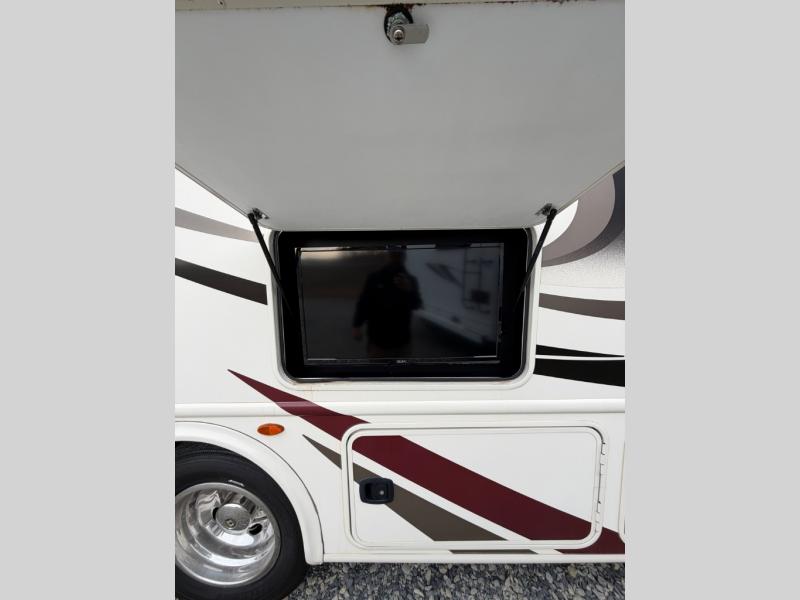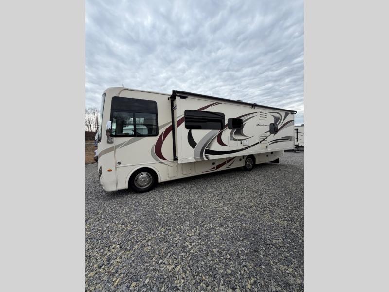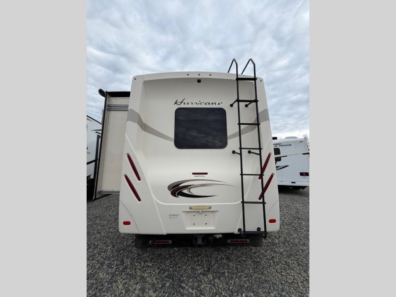 This Hurricane 29M Class A gas motor home from Thor Motor Coach features a full wall driver's side slide out, a king bed, an outdoor kitchen and an exterior TV, plus more!