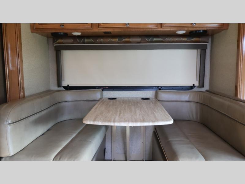 The opposite side along the road side is where you will find a 70" slide out Dream Dinette with overhead storage. There are also two sets of seat belts to keep your back seat travelers safe when heading down the road. You can opt. to choose a sofa bed and pedestal table instead, or the optional reclining theater seating instead of the Dream Dinette, the choice is completely yours. Just off the slide out you will find a closet for clothing storage too.