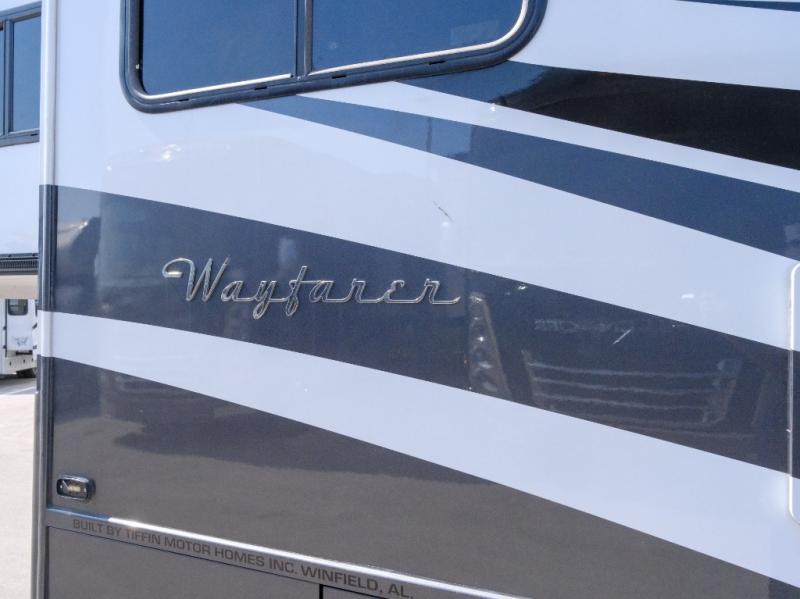 Family travel will be easy and convenient in this Wayfarer class C diesel coach by Tiffin Motorhomes. With a rear slide out queen bed you can have plenty of space without adding to your actual overall length. There is also a second slide up front which opens up the main living area nicely, plus you will enjoy all the conveniences needed to be comfortable while out on the road.