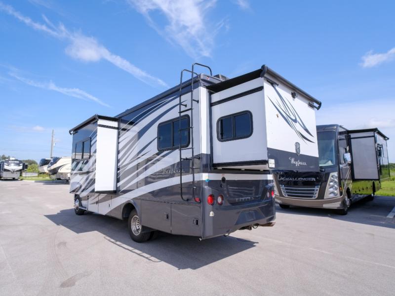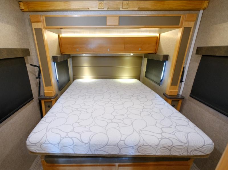 In the very rear of this Wayfarer class C you will find a spacious bedroom thanks to a rear slide out queen size bed including nightstands. There is overhead storage at the head of the bed, plus so much more!
