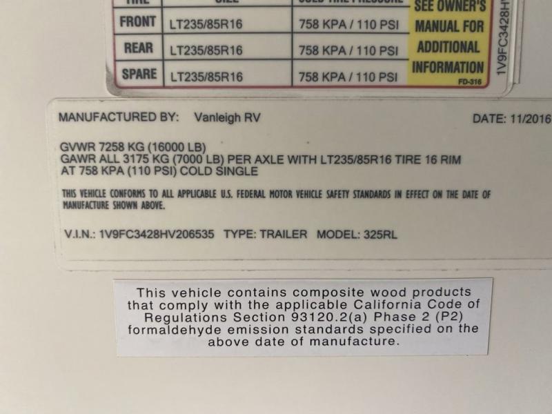 Used 2017 VanLeigh RV Vilano 325RL Fifth Wheel