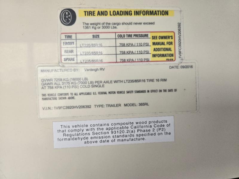 Used 2017 VanLeigh RV Vilano 365RL Fifth Wheel
