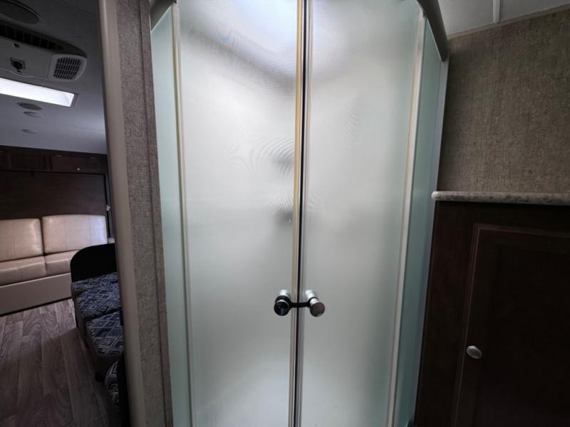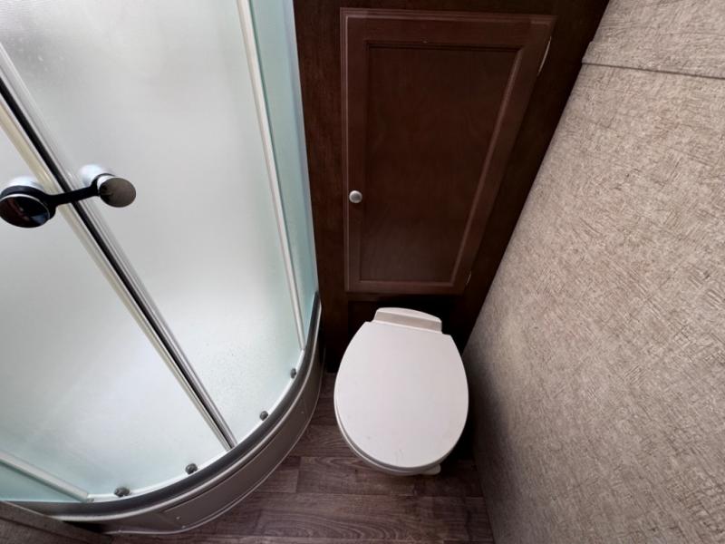 In the rear you will find a spacious bathroom with a closet, sink, linen cabinet over the toilet, and a 34" radius shower, plus so much more inside and outside!