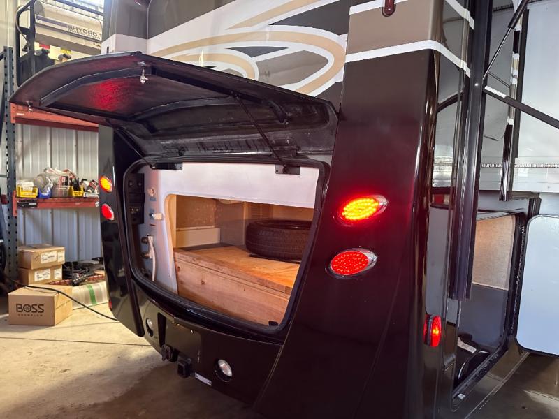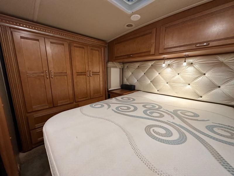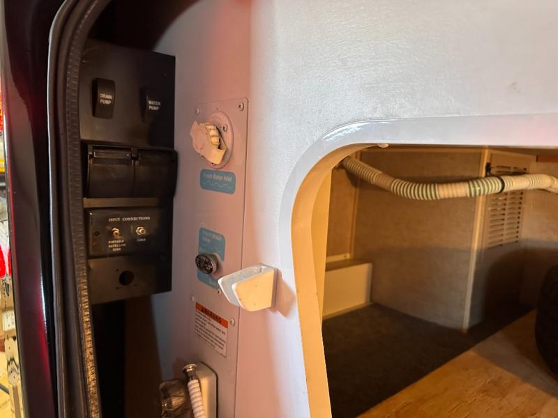 A folding door separates the bedroom space from the living area. Here you will find a queen size bed, dual nightstands with one small and one large, plus a slide out wardrobe including drawers for all of your things. A 24" HDTV is also located along the outer bathroom wall in the bedroom for your enjoyment, plus so much more!
