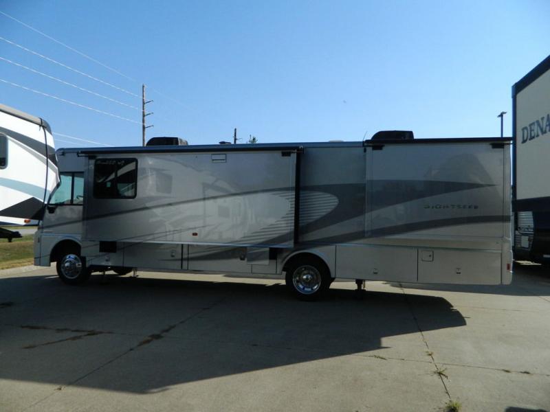 You will enjoy plenty of sightseeing as you travel in this Winnebago Sightseer class A gas motor home 35G. This unit features triple slides which creates a spacious dining and living area plus bedroom, and all the amenities you need to enjoy spending time away from home.