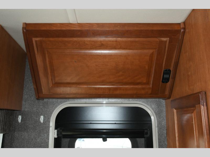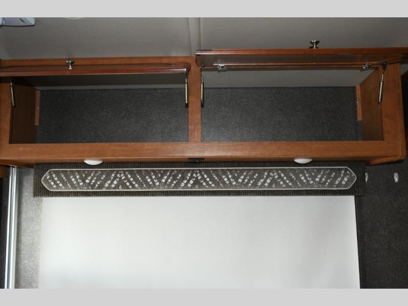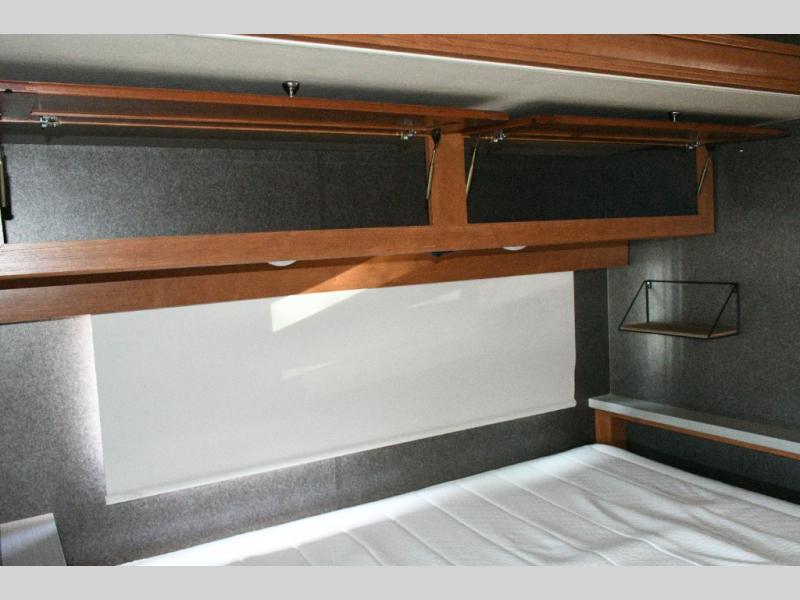 Overhead cabinets and bedside storage for personal items