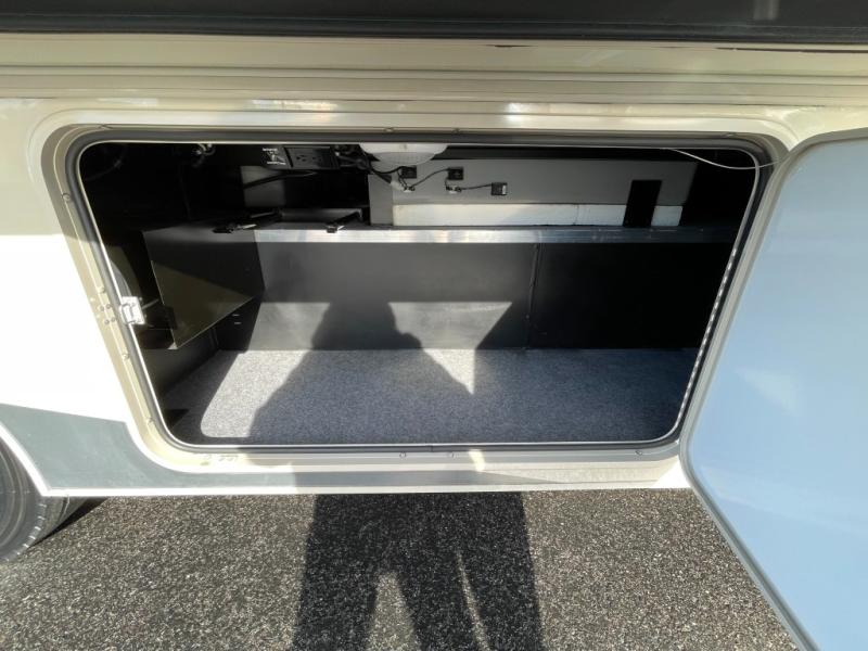 Along the outer bathroom wall is the location for a living area 48" HDTV. There is also an optional powered StudioLoft Bed that can be lowered with the push of a button for additional sleeping space. There is a location above the cab area for an optional TV to be added if you choose too.
