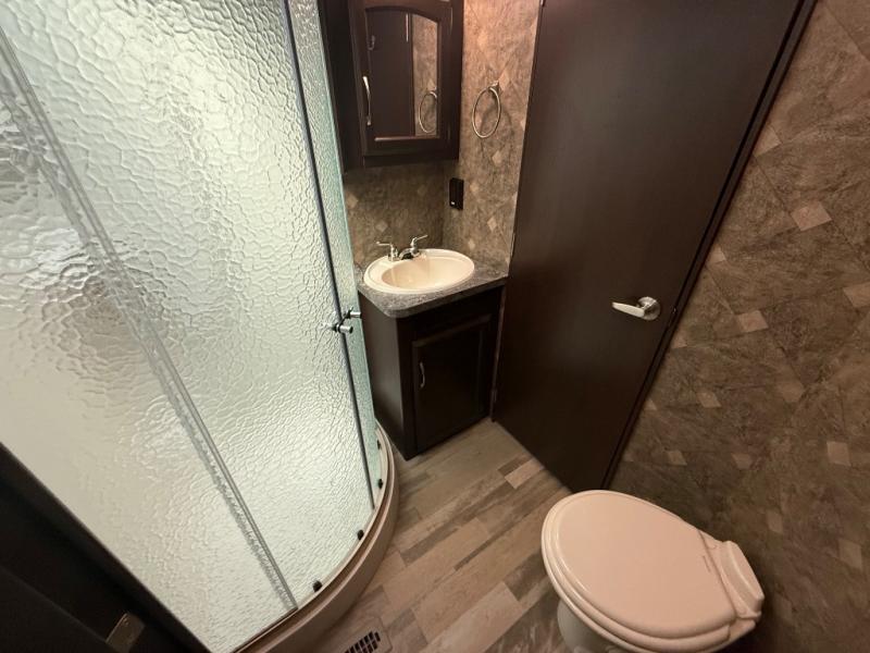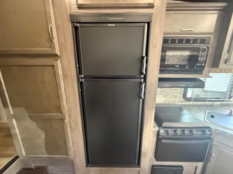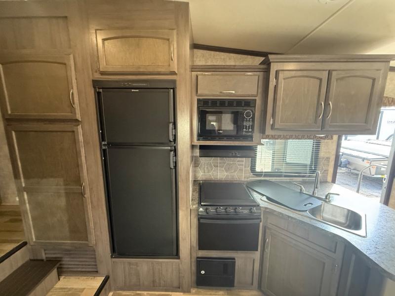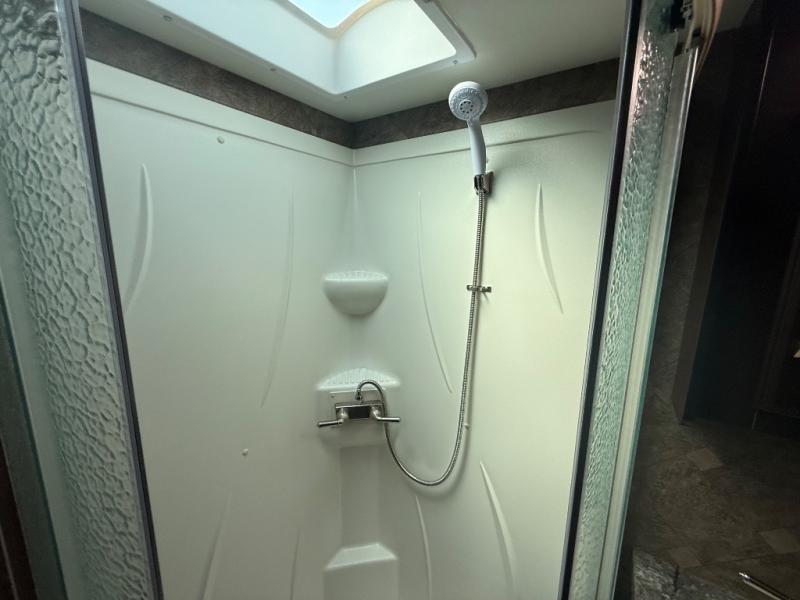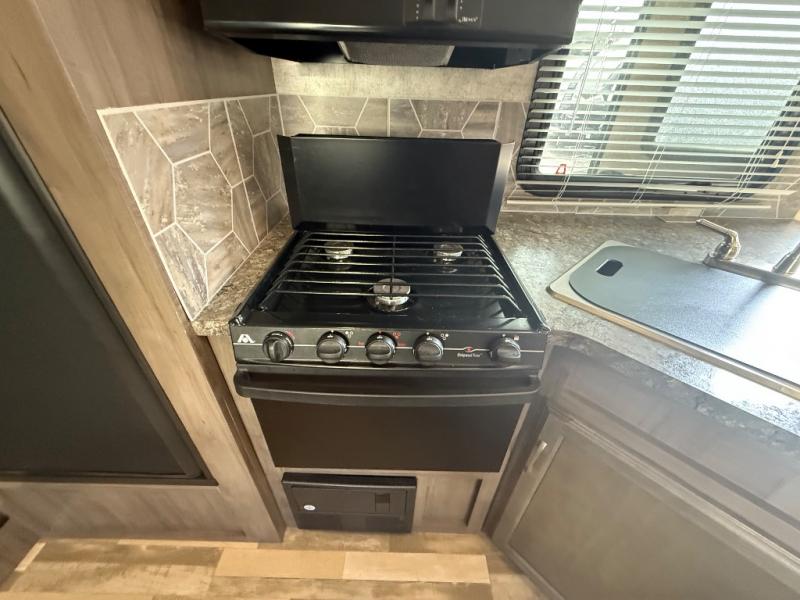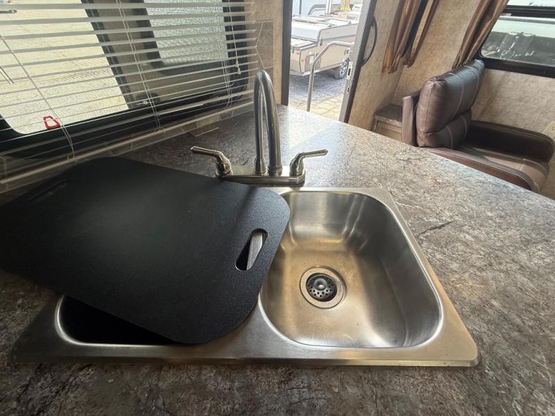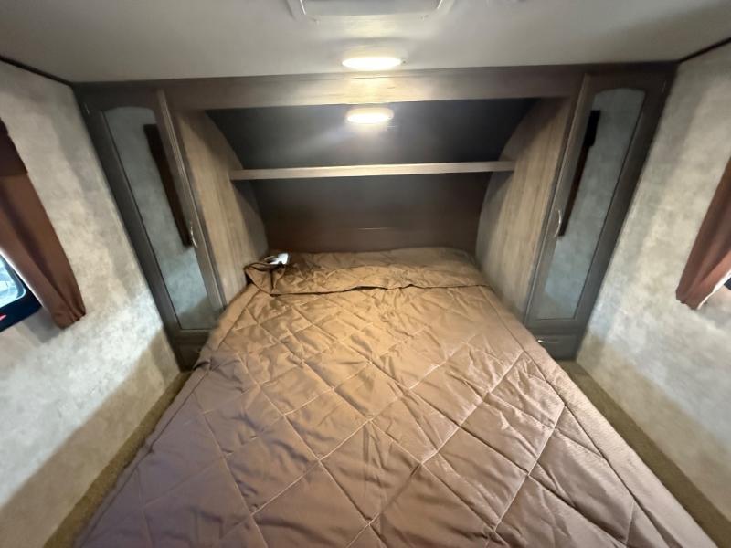 Your voyage to adventure includes all of the comforts of home. Spacious open floorplans with a first class flare include beautiful countertops, upgrade sofa bed, stainless steel kitchen sink, and plenty of counter space. Storage is abundant and overhead cabinets include glass inserts for a modern look. A moveable dinette table when choosing the booth dinette can be placed in front of the sofa, or even out under the awning should the need arise. Master suite sports a deluxe bedspread