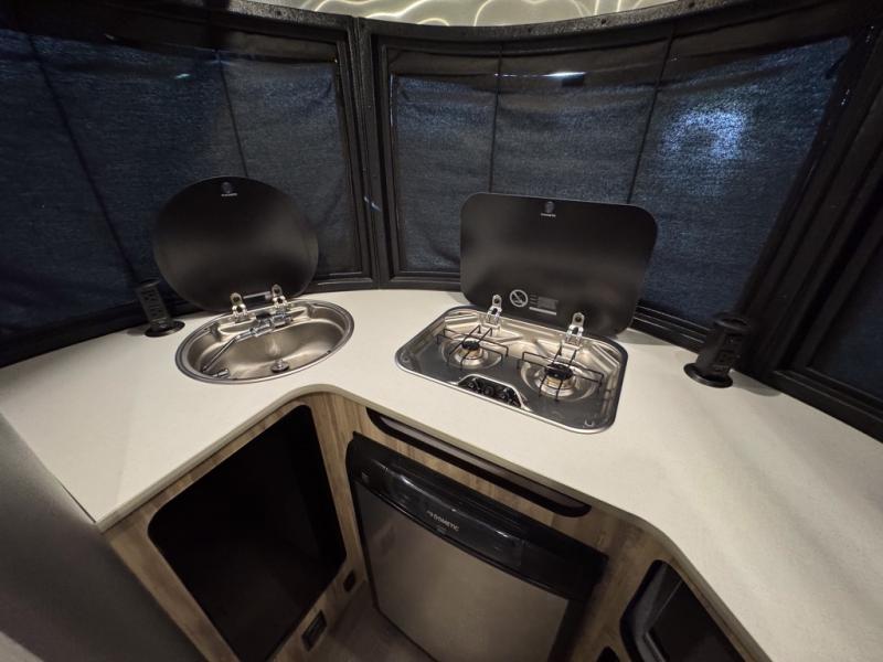 If you are seeking adventure with less hassle this Basecamp Std. Model travel trailer might just fit your fun lifestyle. It's easy to hitch up and provides plenty of comforts of home for off-road and off-grid adventures. The front kitchen allows you to store perishables in the refrigerator and make meals on the two-burner cooktop. Just imagine relaxing on the bench seats with a pedestal table in between while your storage is under your seat. You can configure the sleeping arrangements into one full bed or two smaller beds whichever you prefer. The on-board wet bath comes in handy during the nighttime and daytime, and the retractable clothes line allows you to hang a wet towel or two. Check this model out!