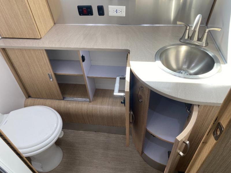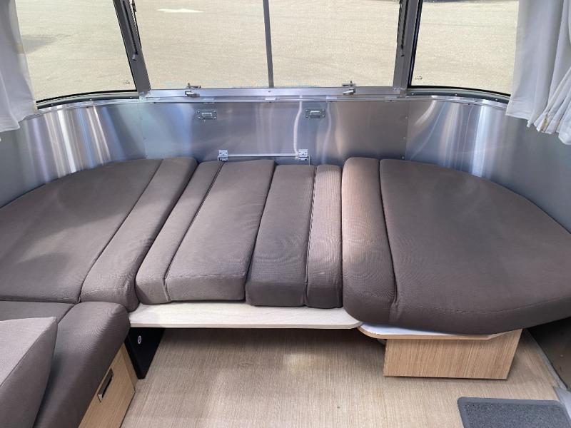 After you reach your favorite destination and set up camp, then come inside and enjoy the comforts throughout this Airstream Flying Cloud 25RB. The front dinette is a great spot to linger after your meals and enjoy another cup of coffee. Next to the dinette along the roadside there is a sofa. As you head toward the rear you will find a split bathroom with a shower along one side and a private toilet area and sink across the hall. In the rear bedroom there are two twin beds.