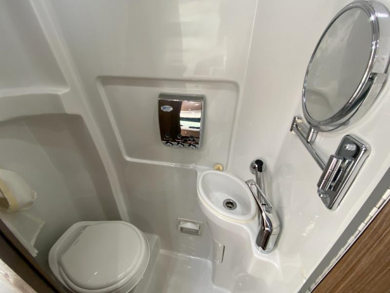 As you move toward the rear notice a convenient wet bath on your left including a toilet, small sink and shower.