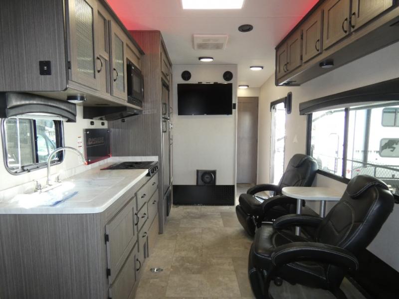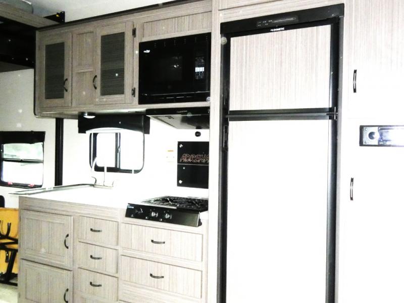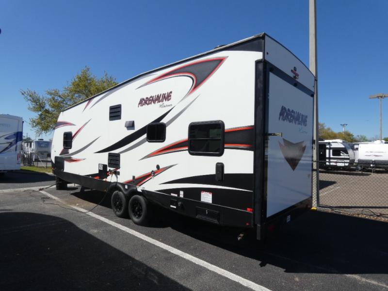 With any Coachmen RV Adrenaline toy hauler travel trailer you will appreciate the 8'6" wide-body construction with Azdel Onboard composite sidewalls, and Dexter Axle brand E-Z Lube and Flex Suspension, as well as Nev-R-Adjust brakes for a safer and smoother ride to every campout. The 30 gallon fuel station will keep the toys running, and the USB ports will allow the electronics to stay charged all while the 40" Jensen LED TV will keep you entertained while you wait your turn on the toys. Choose your favorite model, and enjoy the Adrenaline rush!