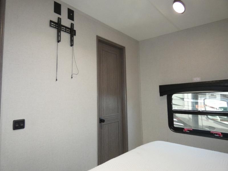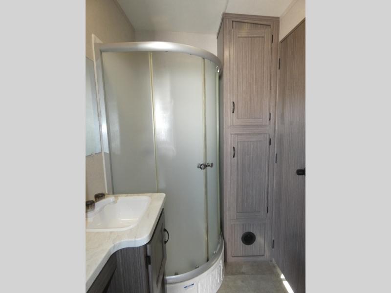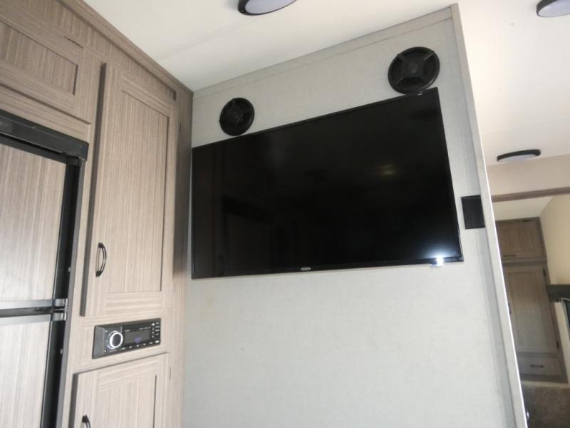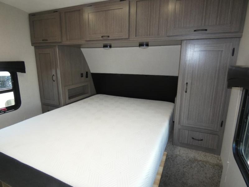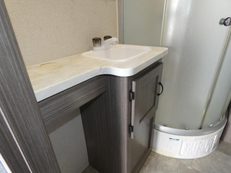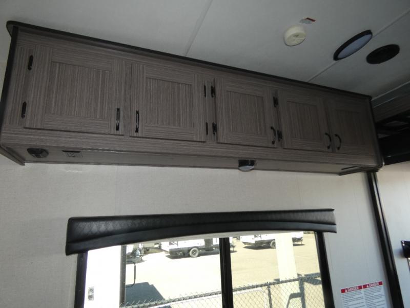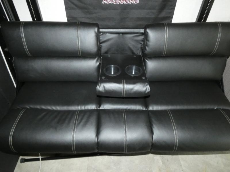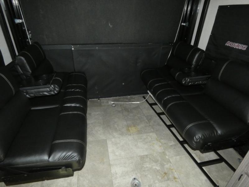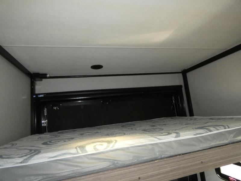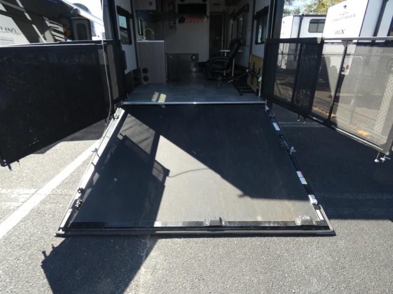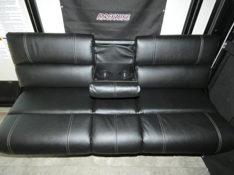 This Adrenaline toy hauler travel trailer provides 6'3" to 15'5" of cargo space for your off-road toys, bicycles, and extra outside camping gear. You can easily load and unload with the rear ramp door, plus you can choose the patio ramp door system if you want more outdoor entertaining space or storage above ground. Model 25QB offers a front private bedroom, full bathroom, and plenty of storage for your helmets, gloves, and off-road clothing. You can enjoy your morning coffee while sitting on the chairs while planning your day. The chef will enjoy the layout of the kitchen including using the convection microwave along with the other appliances to keep everyone fueled for adventure. Stop dreaming about the thrill of riding and staying at your favorite off-road park, hitch up today!