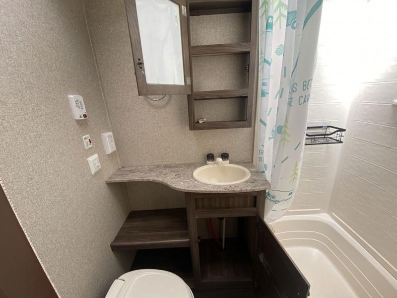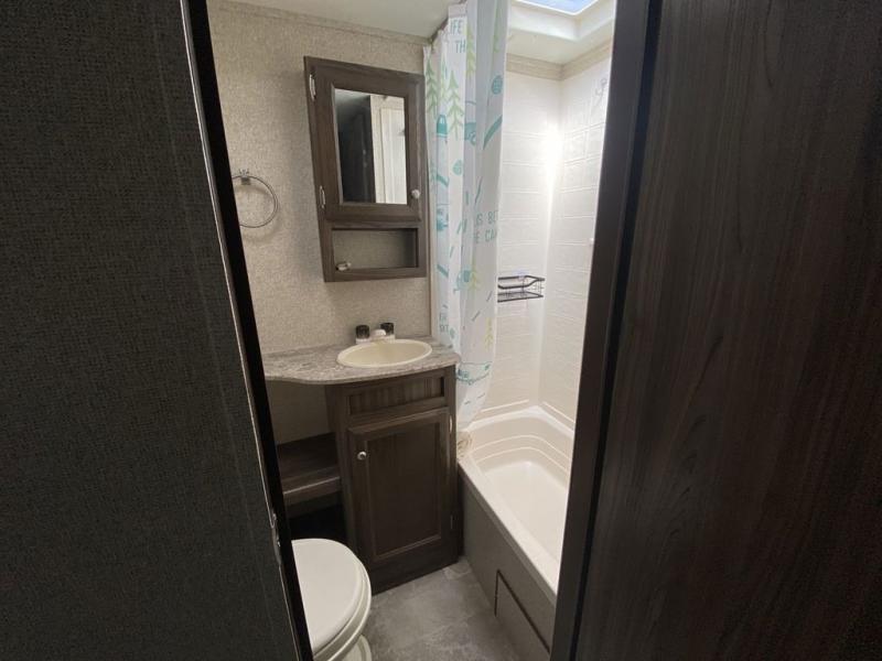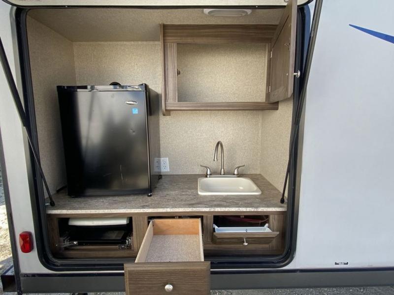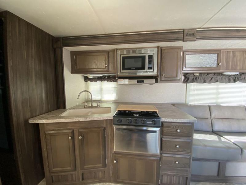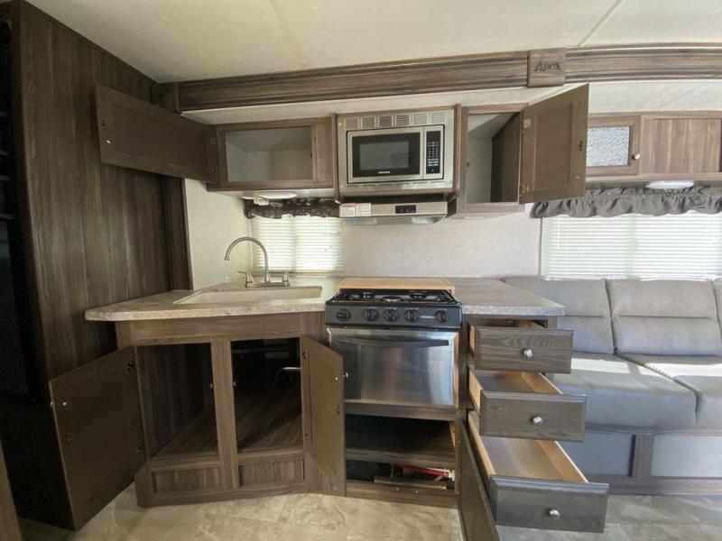Life just got a lot more fun with this Apex Ultra-Lite travel trailer model 300BHS in tow. Starting with the private bedroom for the parents including an Evergreen queen mattress with residential plush comforter. The bunkhouse on the opposite side of the trailer will allow the kids a room to call their own just like at home. The outside kitchen offers a place to clean the fish for dinner without smelling up the whole place. The exterior pass-through storage allows you to pack your fishing poles and such, plus more outdoor gear as you make memories to last a lifetime!