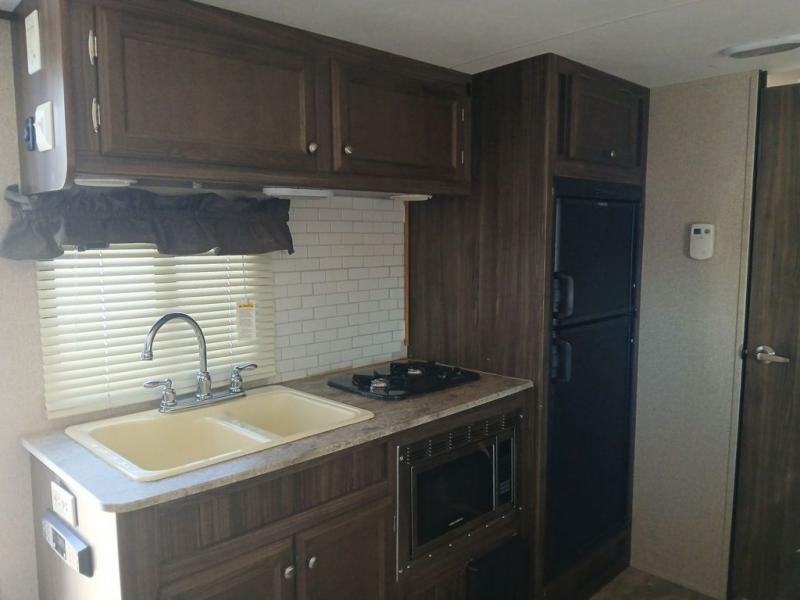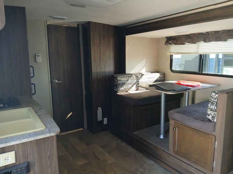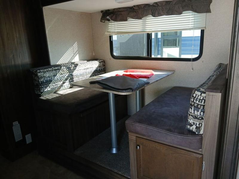 Step inside this Apex Nano and see just how convenient your next camping trip will be. Model 191RBS is the perfect travel trailer for two, or a small family to enjoy camping at a state park or anywhere they choose. The single slide dinette provides a place to relax, offers extra floor space for everyone, and the slide can be used as extra sleeping space. The rear full bath allows you to skip the public facilities and is very convenient at night. A comfortable queen bed can be found up front, and there is plenty of storage throughout the interior and exterior in the front pass-through compartment that is accessible from either side. Load up your gear and head out!