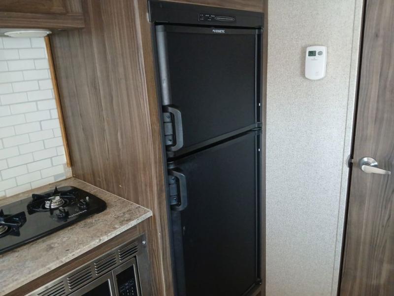 Each Apex Nano is super light in weight and features a vacuum bonded Azdel fiberglass sidewalls with welded aluminum framing in an eco-friendly design! Each contains well built Ambrosia Ash cabinetry with mortise and tenon cabinet door frames with stile and rail cabinet front construction. You will also enjoy high efficiency LED interior lighting, an outdoor shower, plus a skylight in each bath to bring in more natural lighting.