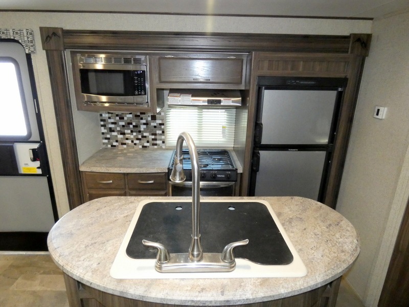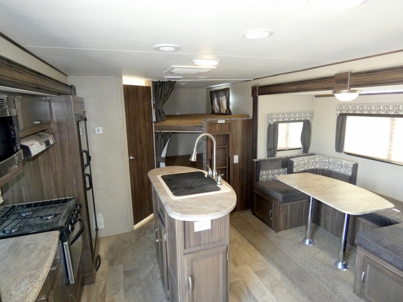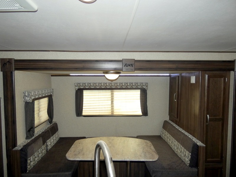 Can you imagine you and your family camping at a state park, on a mountain, or at grandma's farm? This Apex Ultra-Lite travel trailer 259BHSS allows you to travel anywhere with the comforts of a full kitchen including a center island and a u-shaped dinette for family meals. I'm sure the kids already know if they are sleeping on the top or bottom bunk while you rest on an Evergreen queen mattress with residential plush comforter in your own room. So stop imaging and start living your dreams now.