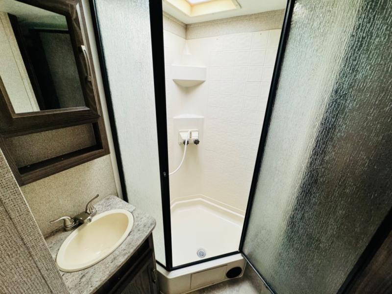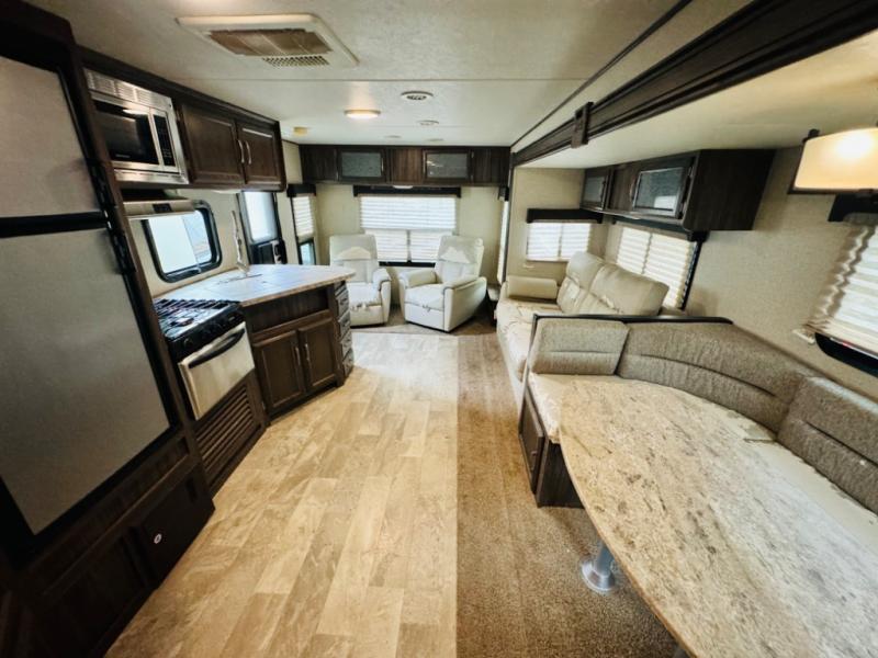 Imagine yourself relaxing on two recliners after kayaking in the river, or playing games with the kids on the u-shaped dinette. This Apex Ultra-Lite 279RLSS is the perfect dual entry travel trailer for a small family with a private bedroom including an Evergreen queen mattress with residential plush comforter, and comfortable furniture in the living area that provides additional sleeping space for the kids or guests. You even have extra storage for more gear thanks to the pass-through compartment up front.