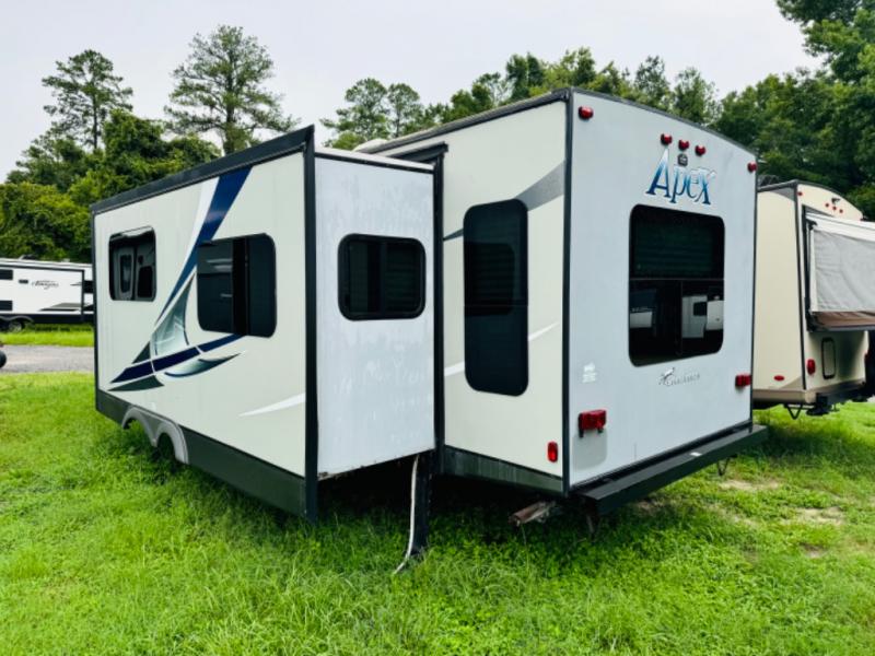 The Coachmen Apex Ultra-Lite model is a quality lightweight trailer that is eco-friendly with innovation throughout. Each model is built with vacuum bonded Azdel fiberglass sidewalls on a I-beam chassis construction. The inside includes stainless steel appliances, a stonecast double bowl kitchen sink, energy efficient LED interior lighting, hardwood mortise and tenon cabinet door frames, and Ambrosia Ash cabinetry throughout. It's time to find the perfect model for you, and start enjoying each adventure!