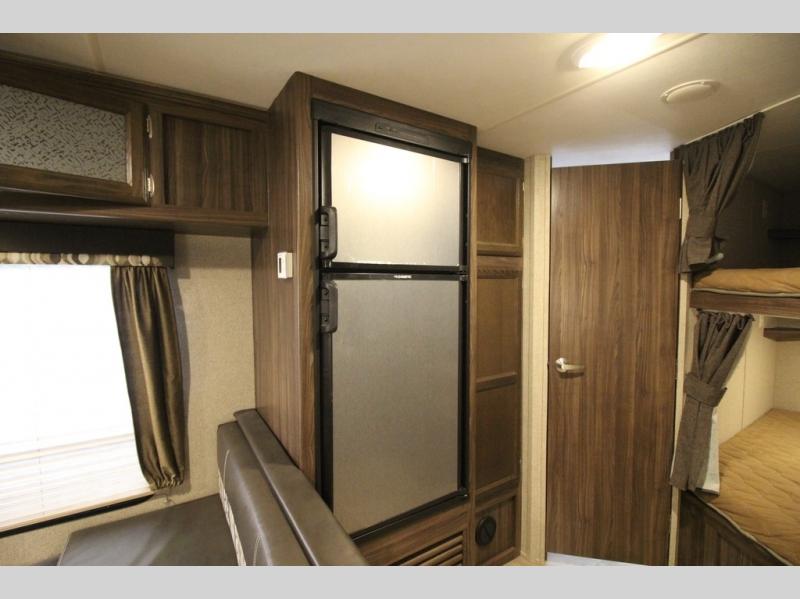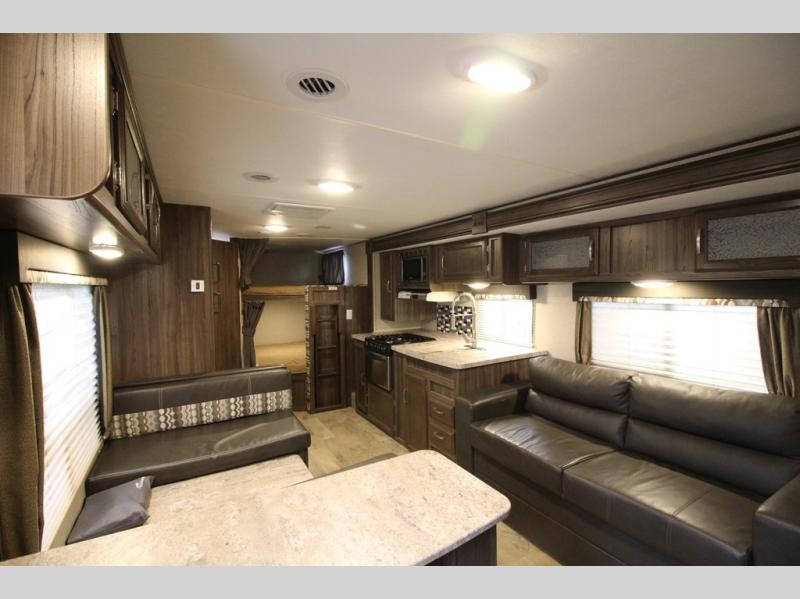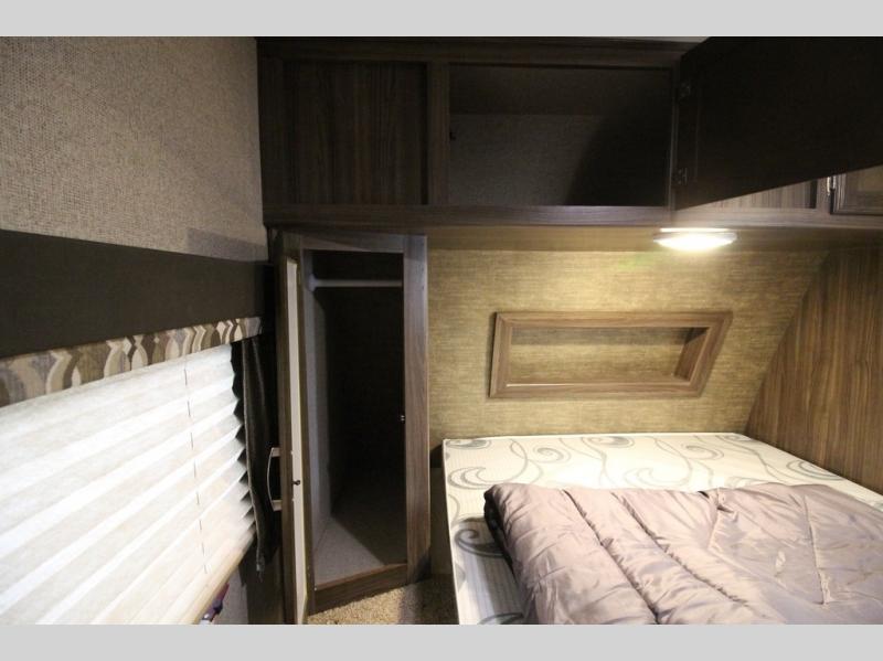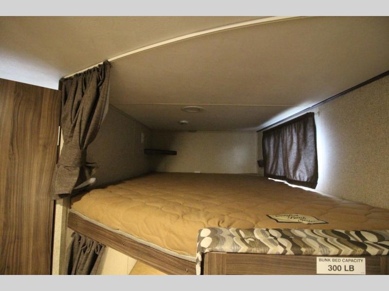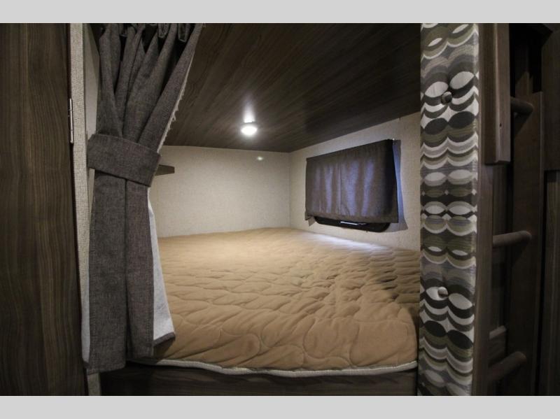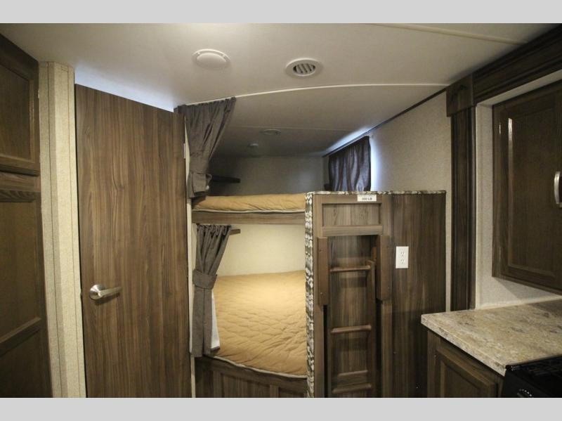 It's time to imagine the fun you and your family will have in this Apex Ultra-Lite travel trailer model 288BHS. Once you reach your destination after a hard days work, you can retreat to the private bedroom with an Evergreen queen mattress with residential plush comforter before the adventure begins tomorrow. Don't worry about the kiddos they will be laughing and talking all night long on the double size bunks. Storage is no issue outside in the pass-through compartment or inside with three wardrobes, overhead cabinets, and such. Enjoy the fun, and don't worry about leaving any comforts behind.