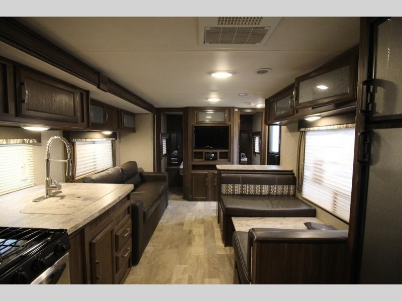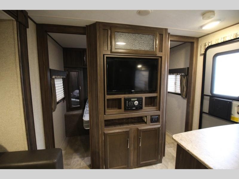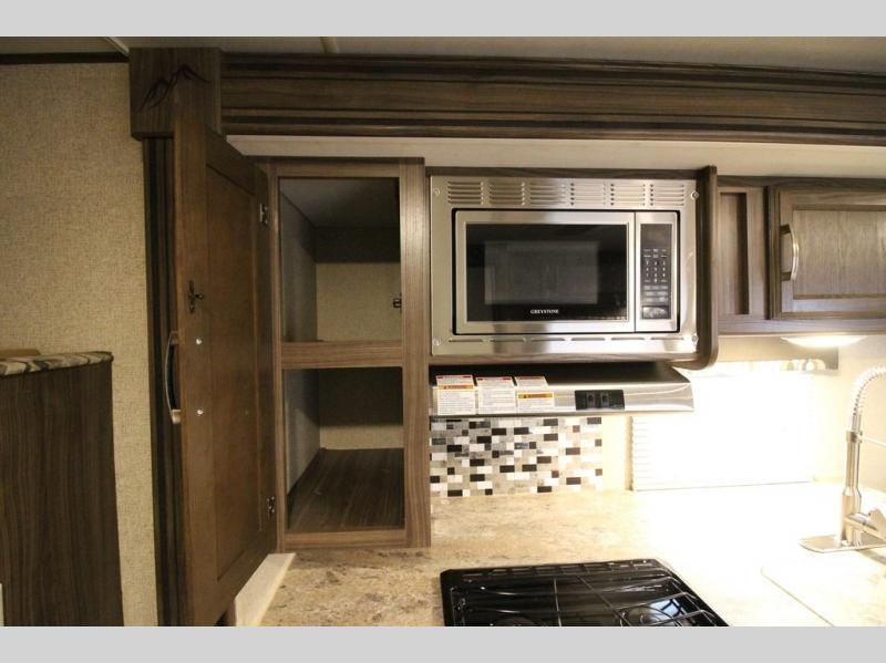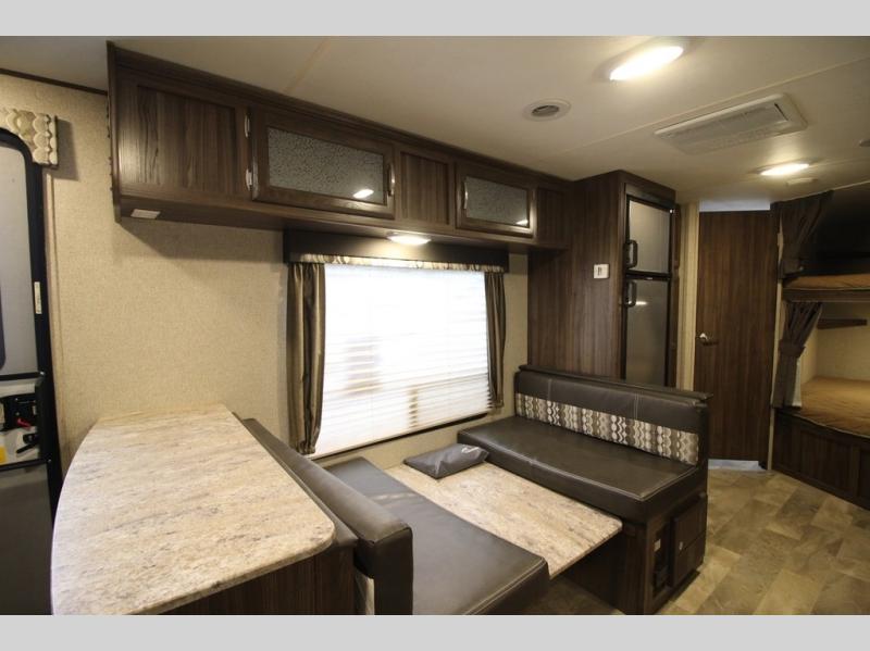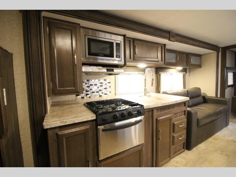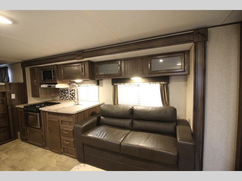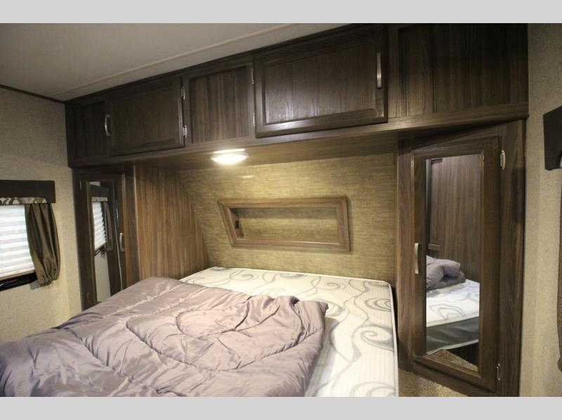 It's time to imagine the fun you and your family will have in this Apex Ultra-Lite travel trailer model 288BHS. Once you reach your destination after a hard days work, you can retreat to the private bedroom with an Evergreen queen mattress with residential plush comforter before the adventure begins tomorrow. Don't worry about the kiddos they will be laughing and talking all night long on the double size bunks. Storage is no issue outside in the pass-through compartment or inside with three wardrobes, overhead cabinets, and such. Enjoy the fun, and don't worry about leaving any comforts behind.