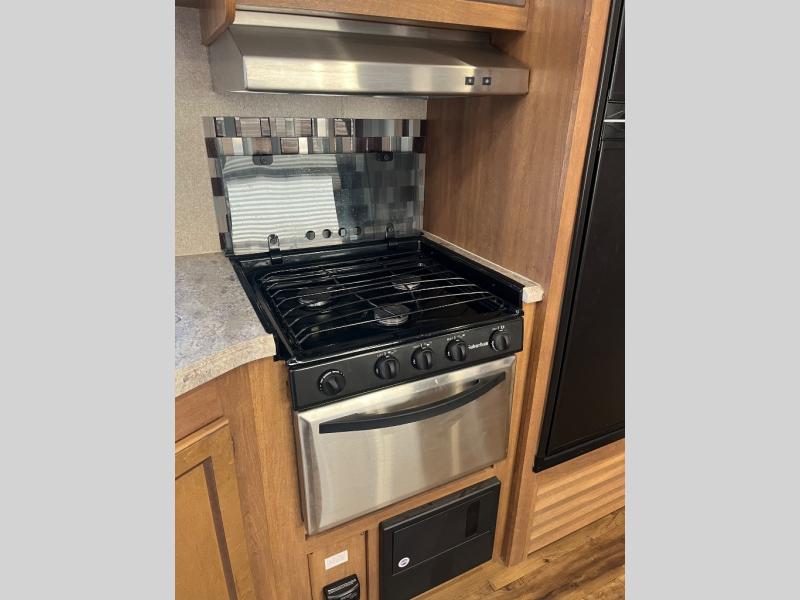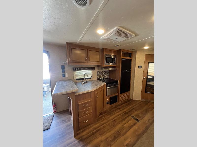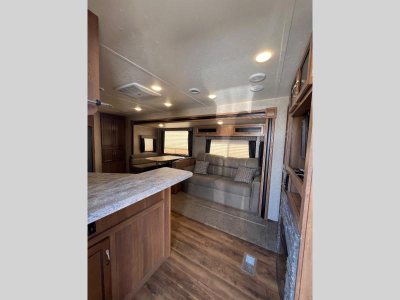 Step into this 243RBS Catalina travel trailer by Coachmen featuring a single slide for more interior space, plus a rear bath, breakfast bar, and a fireplace!