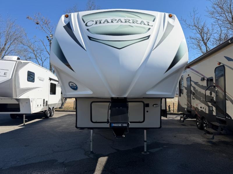 All Chaparral mid-profile fifth wheels are aluminum framed and offer great towability with a lighter overall weight. The interiors are not only spacious but provide luxury living for weekend or extended stay RVers, all at a price you can afford. You will appreciate the universal docking station and Radiant Shield upgraded insulation that has been zero degree tested so you can enjoy camping comfortable in any weather. Each Chaparral offers Pack Max huge unobstructed storage compartments outside as well as plenty of storage space inside so you don't have to leave anything behind. With complete kitchen, bath, and sleeping accommodations, camping will be as comfortable as home while you enjoy plenty of storage, a residential queen memory foam mattress, and a large shower. So for all of your vacation needs, choose a Chaparral mid-profile lightweight fifth wheel today!
