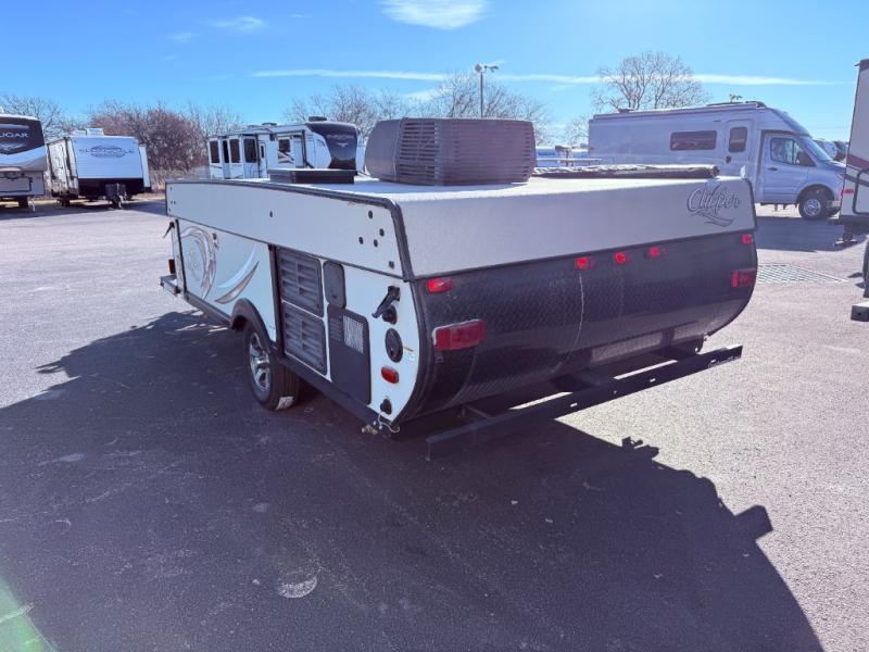 Imagine being able to sleep indoors after playing outdoors all day. This Clipper camping trailer 1285SST Classic allows you to sleep on a king tent end bed while the kids sleep on a queen tent end bed. If you brought friends, you can fold down the dinette within the single slide out, and the gaucho may fit a sixth person if needed. You can even cook meals, and stay clean thanks to the wet bath. Take a look, you will be glad you did.