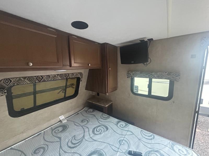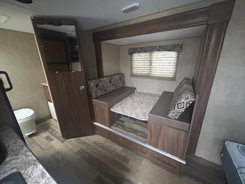 When you are ready to camp with the comfort of a full bath, and a queen bed at night, take a look at this Clipper Ultra-Lite 17FQS travel trailer. A couple or smaller family will enjoy kitchen amenities, plenty of storage, and sleeping space for 3 in this trailer. The single slide out booth dinette offers more walking around space for entertaining guests. The rear full bath provides everything you need to get cleaned up, plus a medicine cabinet. It's time to see why this trailer is perfect for your family.