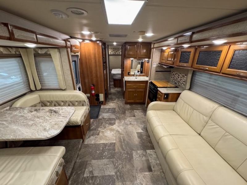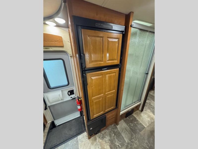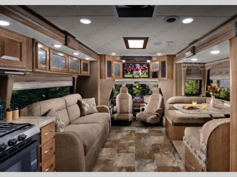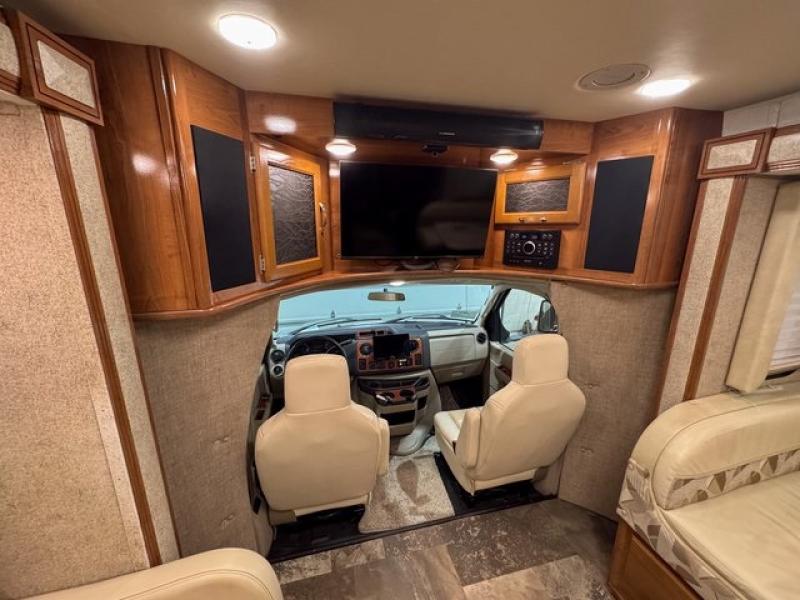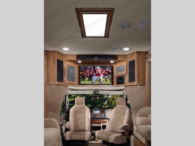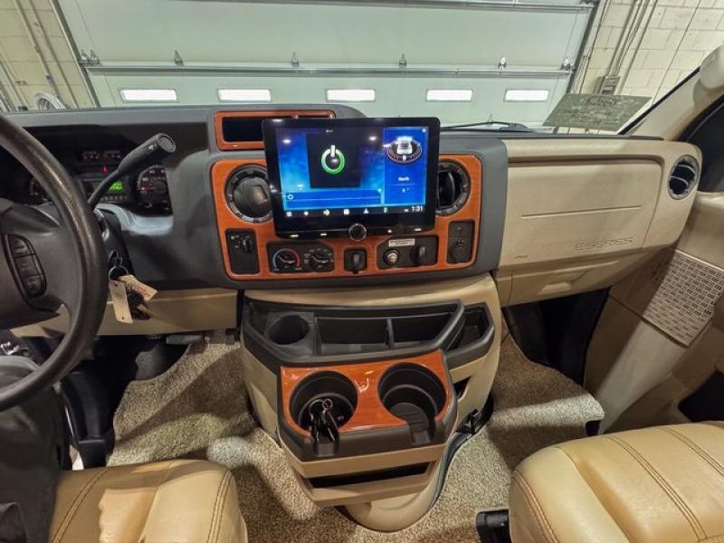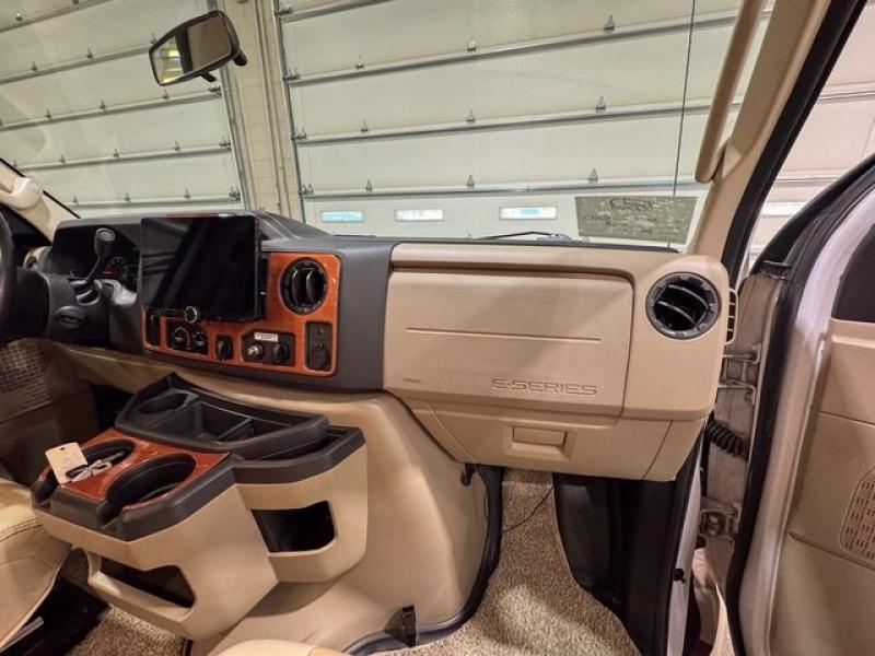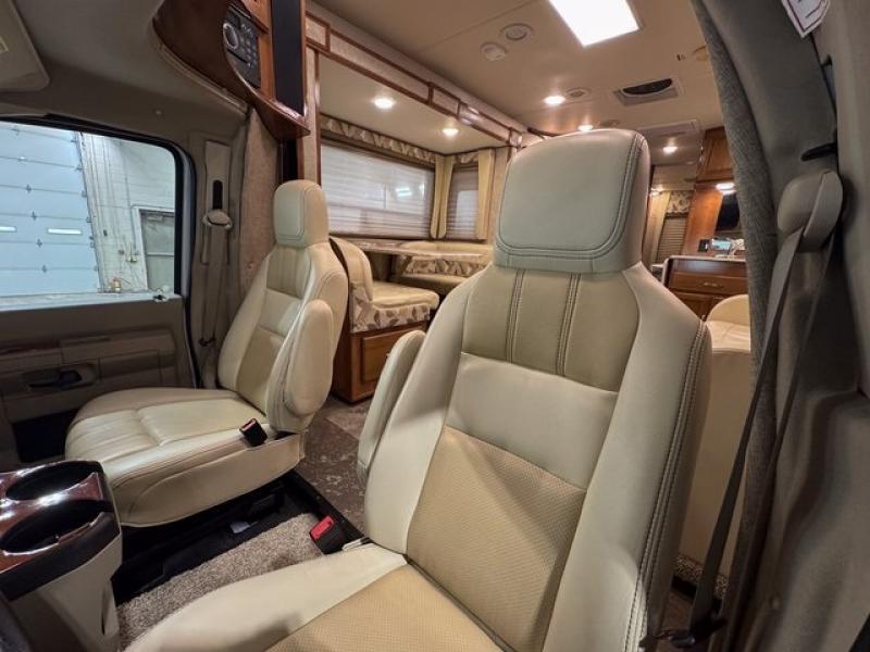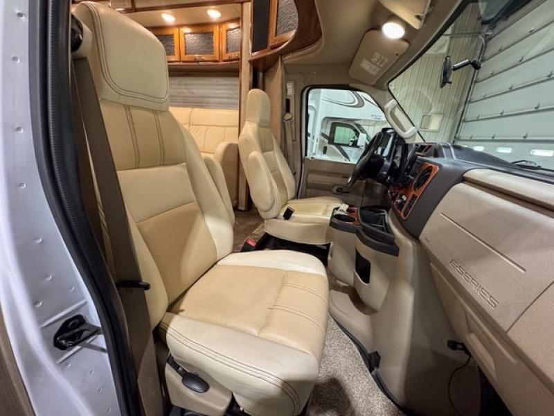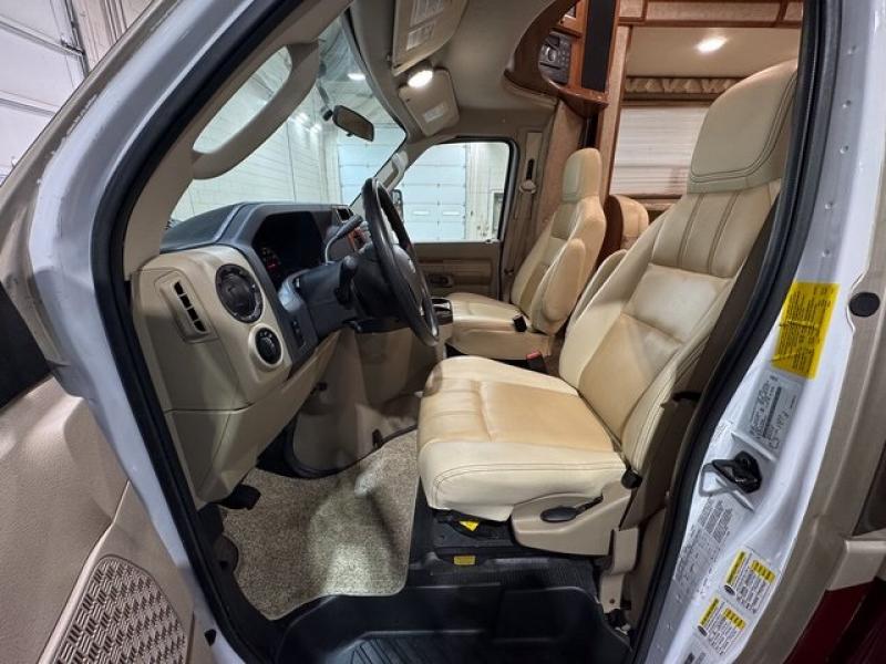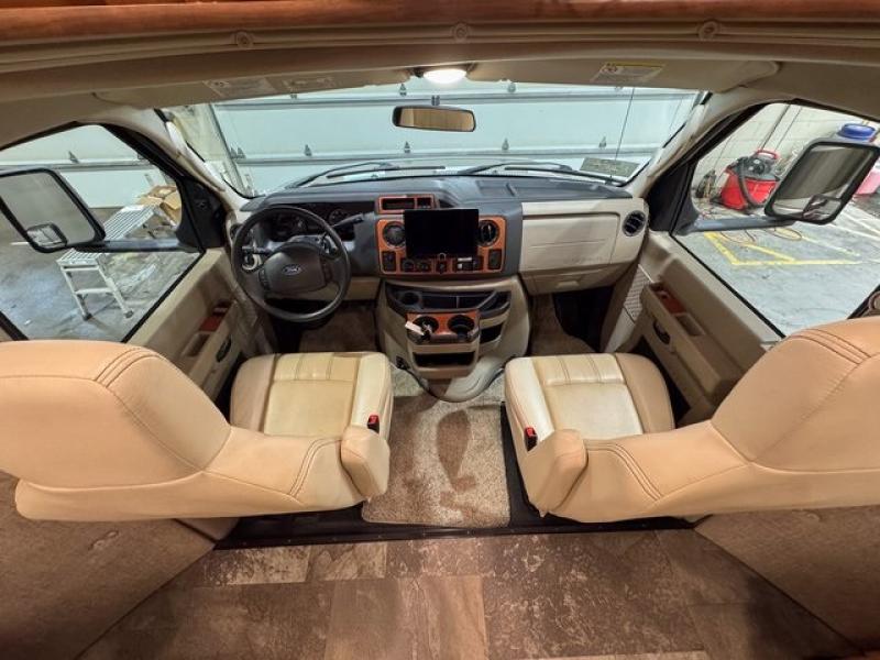 This Ford model offers optional swivel passenger and driver seats which is a nice feature when you are parked. The seats can easily become part of the living area up front. This unit is also available with a Chevy 4500 chassis and 6.0L engine. With the Chevy chassis you do not have the driver and passenger seat swivel option.