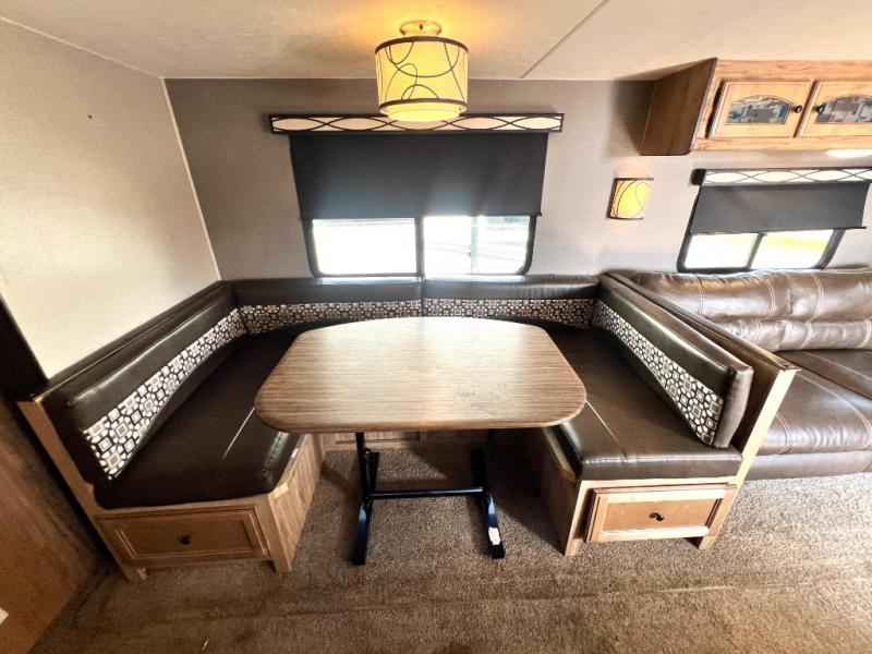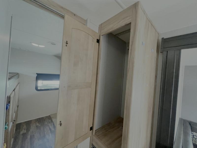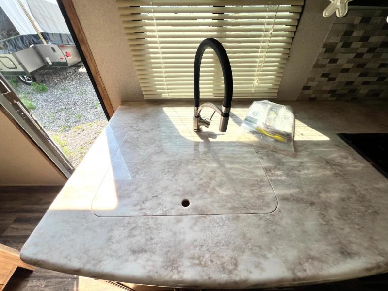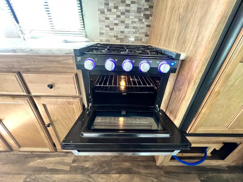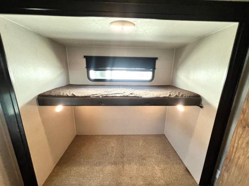 There is also no shortage of storage space with a front pass-through compartment. If that isn't enough, then check out the camp kitchen beneath the double bunk along the rear curbside. Here you can create meals or snacks while enjoying the great outdoors at the same time, plus so much more!