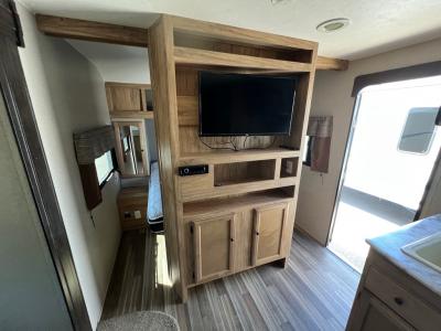 This Freedom Express Select 29SE travel trailer allows you to take your larger family and friends with you each time you take off to the campground or family farm. After setting everything up, you can take your tow vehicle to the local store to get your groceries. Once you get back, be sure to relax in your own private bedroom while the kids play and laugh in the rear bunkhouse with quad bunks. You will also find extra sleeping space on the U-shaped dinette and sofa slide out. There are full kitchen and bath amenities to keep everyone fed and clean the whole time. You can store all your items in the wardrobes and cabinets throughout, plus the exterior pass-through compartment allows for some larger camping items. Take a step inside after looking around the outside, to see how perfect this model is for your future plans.
