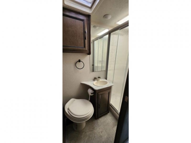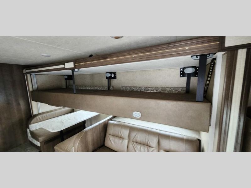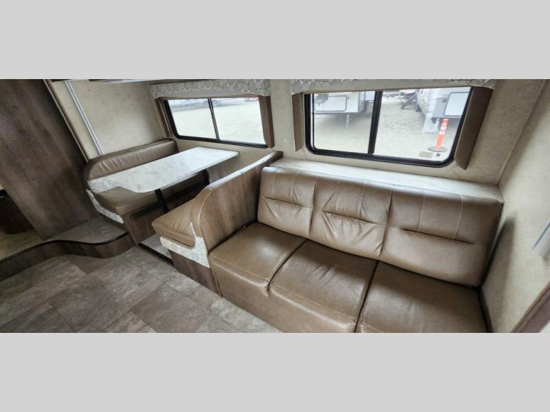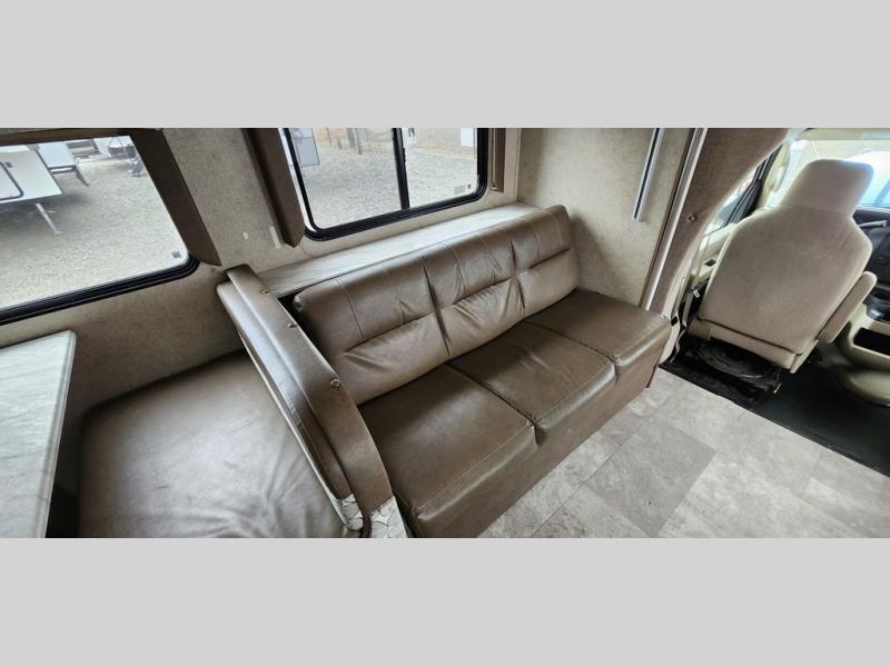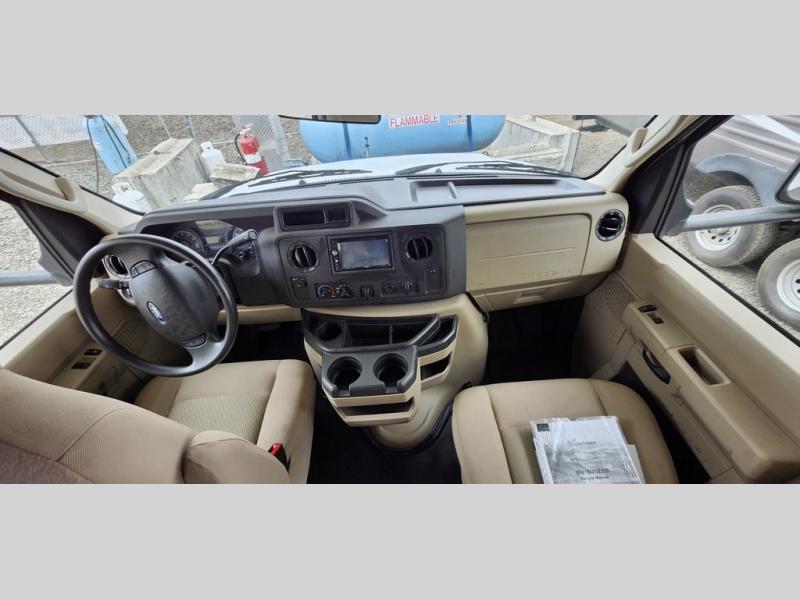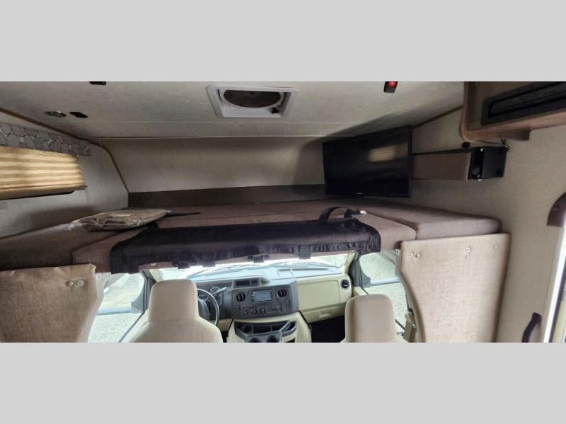 With this Freelander motorhome you will get a reliable and quality Class C gasoline coach that contains more factory-installed features than anyone else. This coach features Azdel composite walls and a fiberglass exterior to keep the entire structure lightweight. This Freelander also features larger holding tanks, like the 50 gallon fresh water tank and 68 LB propane tank, and since this model has been prepped for solar panels, it makes it easier for you to go off-grid whenever you choose to do so. Inside you will enjoy a spacious interior that includes Coachmen's Even-Cool AC with residential duct work which will provide you with a much quieter and more efficient way to cool things down in warmer weather. LED lighting and high-quality furnishings give this coach a touch of elegance, and the 1 1/2" transition step from the cab to the coach makes moving back and forth between the two much easier. It also aids in allowing passengers seated in the rear to see out of the large front window.