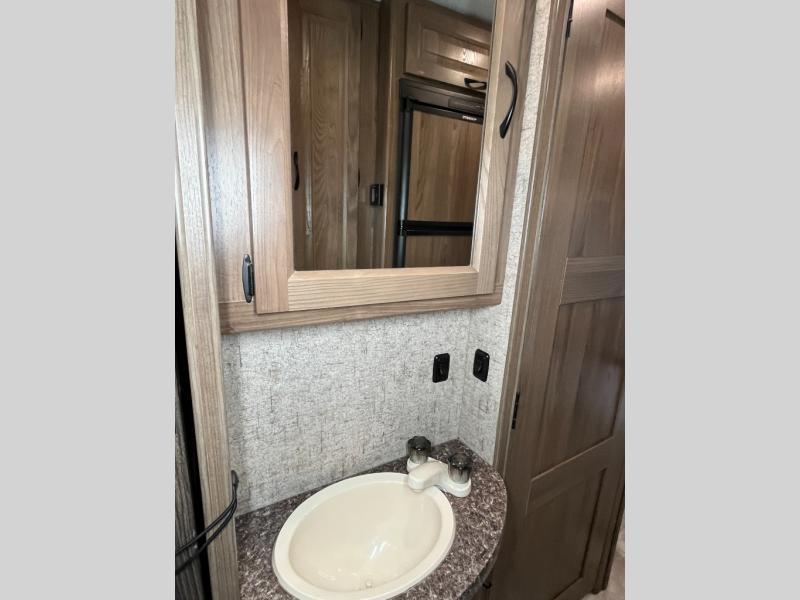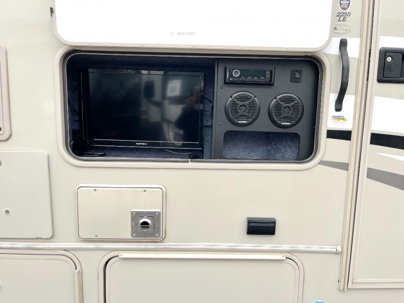 This Prism 2250 DS class C diesel motor home makes traveling and sleeping comfortable. From the rear queen bed slide for yourself, and the cab-over bunk, and booth dinette slide out for the kids or grandkids, everyone has a spot to call their own at night. The private toilet and shower allow someone to be outside the bath door washing their hands or brushing their teeth in the single sink. The cook can make meals with the range and residential size microwave, plus the counter extension provides more serving space. This RV is the perfect solution for your short or long trips.