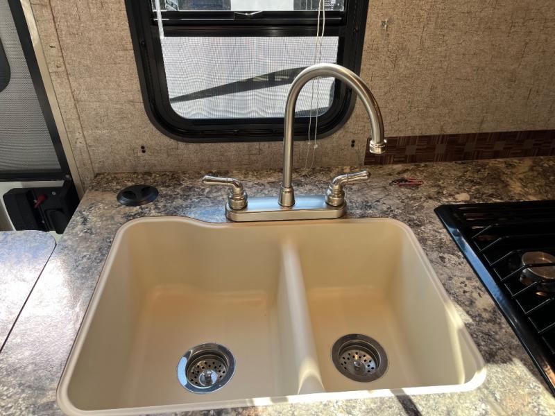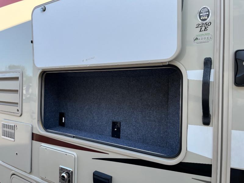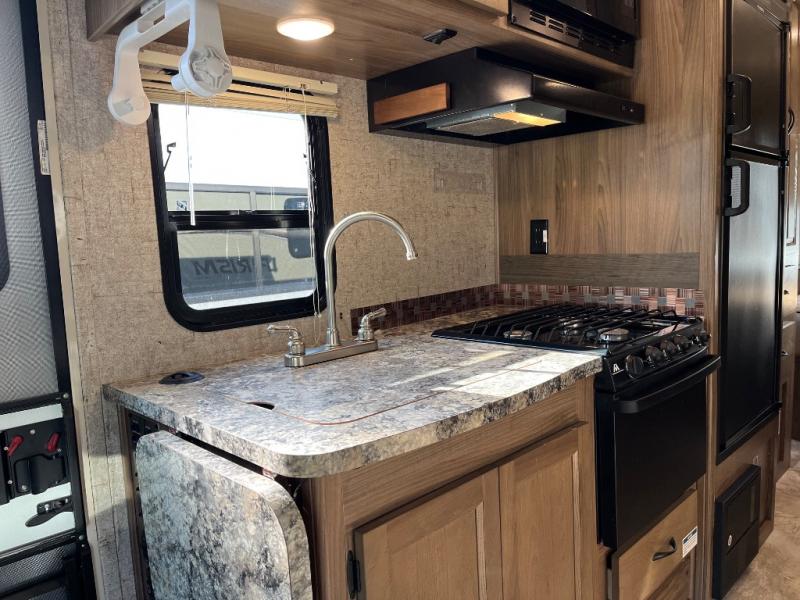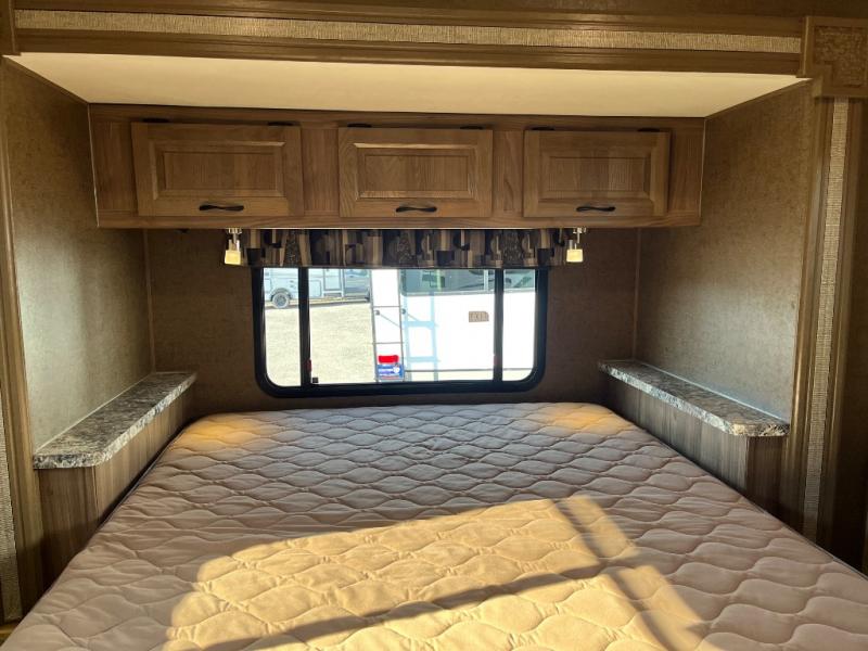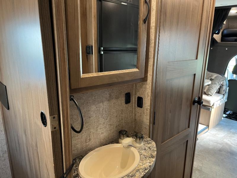 This Prism 2250 DS class C diesel motor home makes traveling and sleeping comfortable. From the rear queen bed slide for yourself, and the cab-over bunk, and booth dinette slide out for the kids or grandkids, everyone has a spot to call their own at night. The private toilet and shower allow someone to be outside the bath door washing their hands or brushing their teeth in the single sink. The cook can make meals with the range and residential size microwave, plus the counter extension provides more serving space. This RV is the perfect solution for your short or long trips.