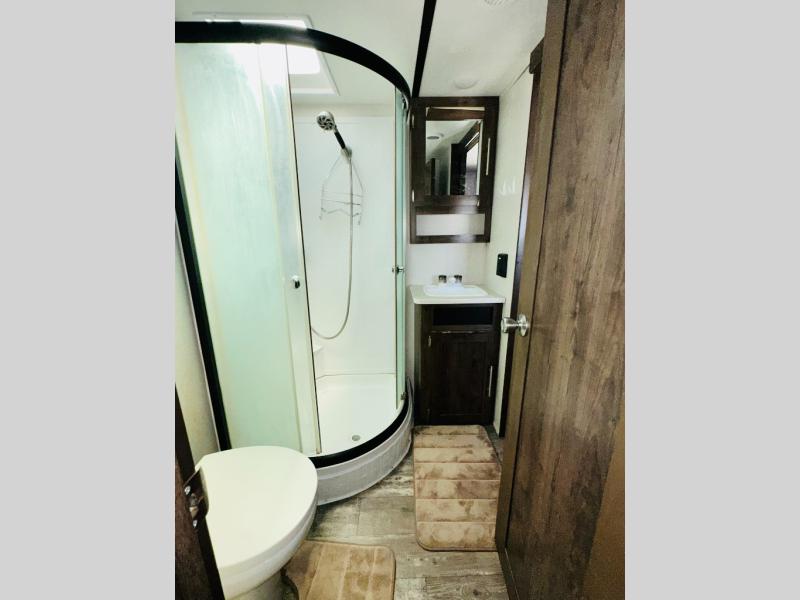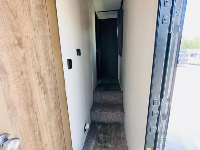 The CrossRoads RV Volante fifth wheels are anything but ordinary! From the residential wood blinds in the living room, the premium residential furniture throughout, to the LED lights with LED accents lights in the slide outs you will be impressed from the minute you enter these fifth wheels. In each kitchen you will find stainless steel appliances such as an XL 50/50 sink, microwave, and oven. Along the exterior there is a fully enclosed and heated underbelly, an outside shower which makes it easy to clean up before heading inside, and tinted safety glass windows.