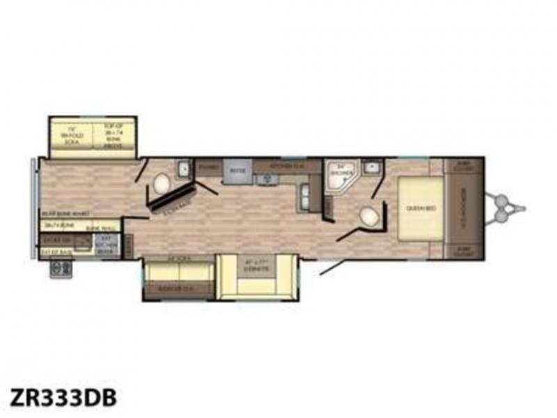 Are you ready for the ultimate vacation with this double slide out, rear bunk house, on this Zinger ZR333DB travel trailer by CrossRoads RV. Oh, and did I mention there are dual kitchens (one inside and one outside)! When you choose to eat indoors then you can eat at the u-dinette and at night this area also converts into additional sleeping space. You will also enjoy the convenience of the bath and a half with the half bathroom located near the bunkhouse and the full bathroom is near the private front bedroom.