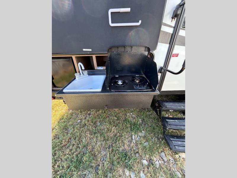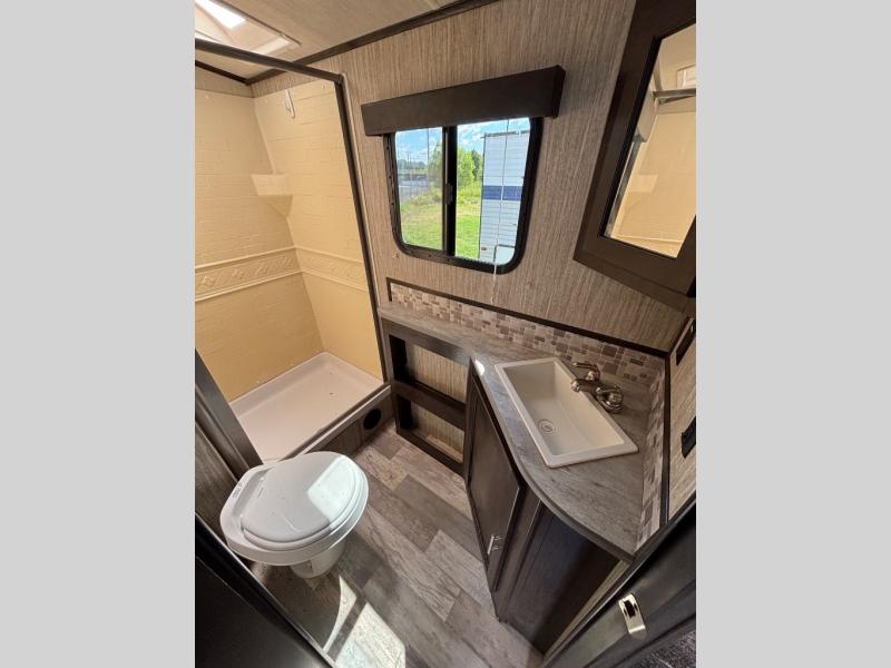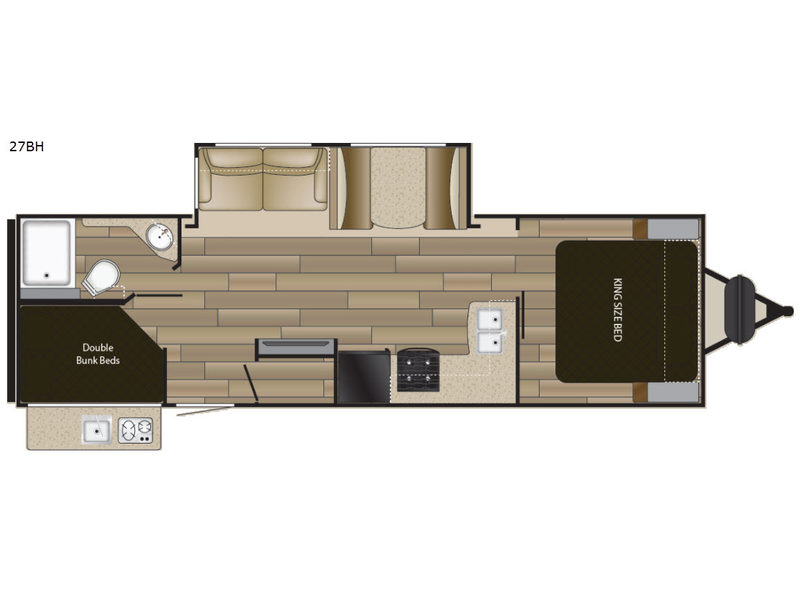 Family adventures are waiting for you in this Fun Finder XTREME LITE 27BH travel trailer. Everyone will have their own bedding from the king bed in the private bedroom, the rear set of double size bunk beds, and the furniture in the living area. After tubing or swimming down the river a warm shower will be ready for everyone in the full bathroom. The cook in the family can prepare and serve dinner on the solid surface countertops for everyone to eat together around the dinette or outside on the picnic table. Don't worry about running out of dry goods thanks to the large closet/pantry next to the entry. So if you are a family of four that enjoys taking friends on your campouts, or a family of eight, this model is perfect for you!