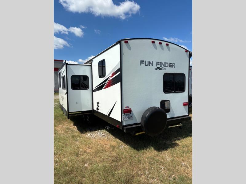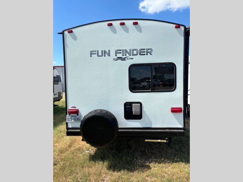 The Fun Finder XTREME LITE travel trailer by Cruiser offers Extended Season traveling, heavy duty components, and a painted from cap with a durable clear coat and diamond plate metal rock guard for years of enjoyment. The barreled ceilings provide more interior head room, and the oversized exterior storage allows you to pack more outdoor gear. You will find a Bluetooth HDMI DVD/Stereo, and charging station with a 12V and USB port to keep your electronics charged the whole time. Come see why you shouldn't travel without a Fun Finder XTREME LITE travel trailer towed behind you.
