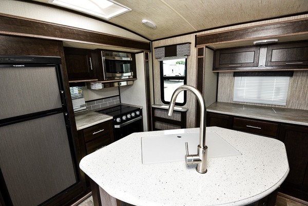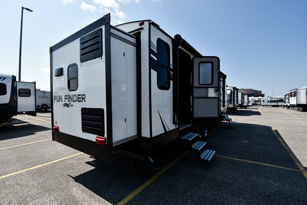 If you have been searching for a couple's travel trailer with plenty of floor space to move around freely when entertaining other campers, this Fun Finder XTREME LITE 27IK should meet your needs, plus some! Starting with dual entry which allows for quick access to the refrigerator to grab a drink, or the bedroom entry which allows you to sneak inside near the second entry into the bathroom. You can drink coffee while making breakfast on the unique rear kitchen slide out and solid surface countertops, wash dishes at the kitchen island, and provide extra sleeping space at night for grandkids on the furniture. Start your next RV trip today with plenty of storage and space for any length of travel!