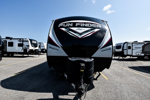 The Fun Finder XTREME LITE travel trailer by Cruiser offers Extended Season traveling, heavy duty components, and a painted from cap with a durable clear coat and diamond plate metal rock guard for years of enjoyment. The barreled ceilings provide more interior head room, and the oversized exterior storage allows you to pack more outdoor gear. You will find a Bluetooth HDMI DVD/Stereo, and charging station with a 12V and USB port to keep your electronics charged the whole time. Come see why you shouldn't travel without a Fun Finder XTREME LITE travel trailer towed behind you.