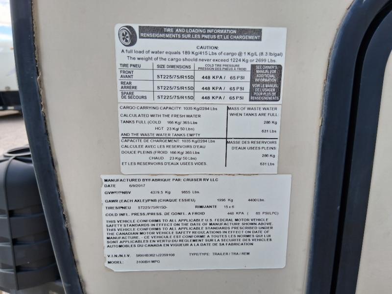 Used 2018 Cruiser MPG 3100BH Travel Trailer