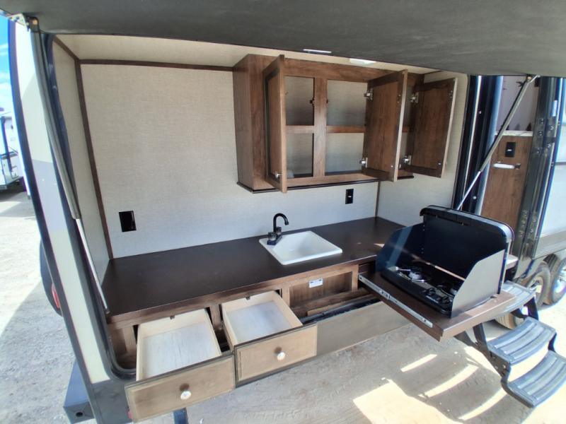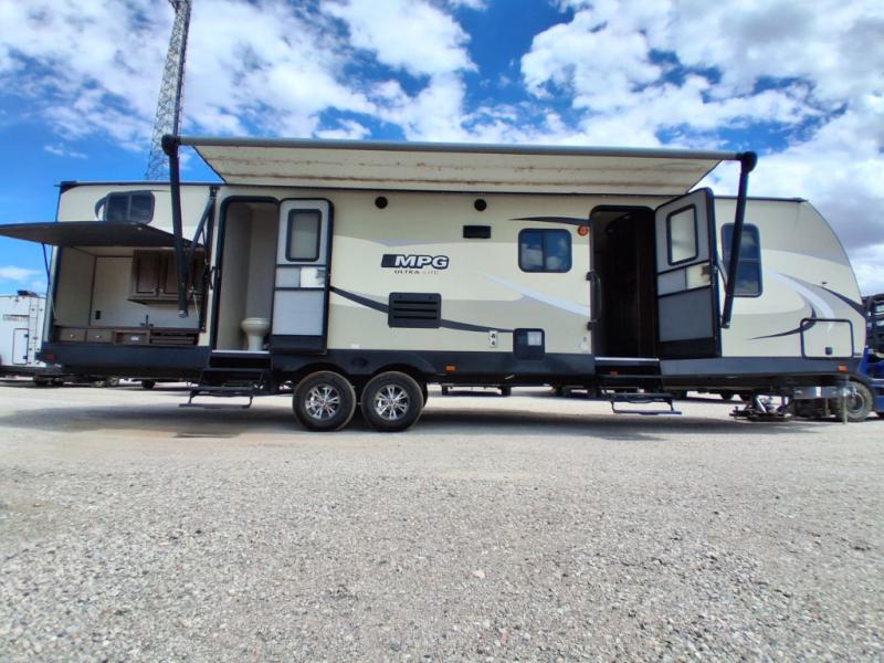 If you have been imagining your family camping, hiking, and biking together, then choose this dual entry MPG travel trailer model 3100BH. After all your adventures you can return to a rear bunkhouse with two bunk beds, a futon, and plenty of space for the kids to hang out thanks to the slide out. The main living area provides a second slide offering dining, seating, and more interior floor space to spread out and relax. When you are ready to escape to your own room, the private front bedroom offers you a quite escape. The cook in the family has the option to make meals indoors, or outdoors on the outside kitchen. It's time to enjoy the great outdoors any where you want to go!
