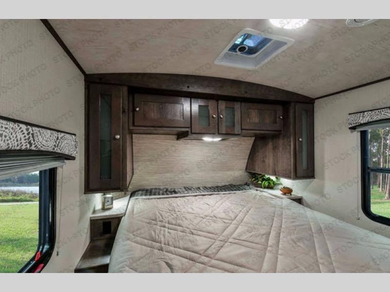 With any Crusier MPG travel trailer you will appreciate the 5 sided aluminum constructed travel trailer that is towable by your half-ton truck. The high-gloss fiberglass exterior and front cap will turn heads at any campsite. Inside, you can enjoy the residential-style furniture with top-stitching, the barrel roof, the Shaw carpet with R2X stain-resistance treatment, and the king size bed that makes you feel like you haven't left any comforts back home. It's time to start making memories every mile you travel, come choose your favorite MPG layout today!