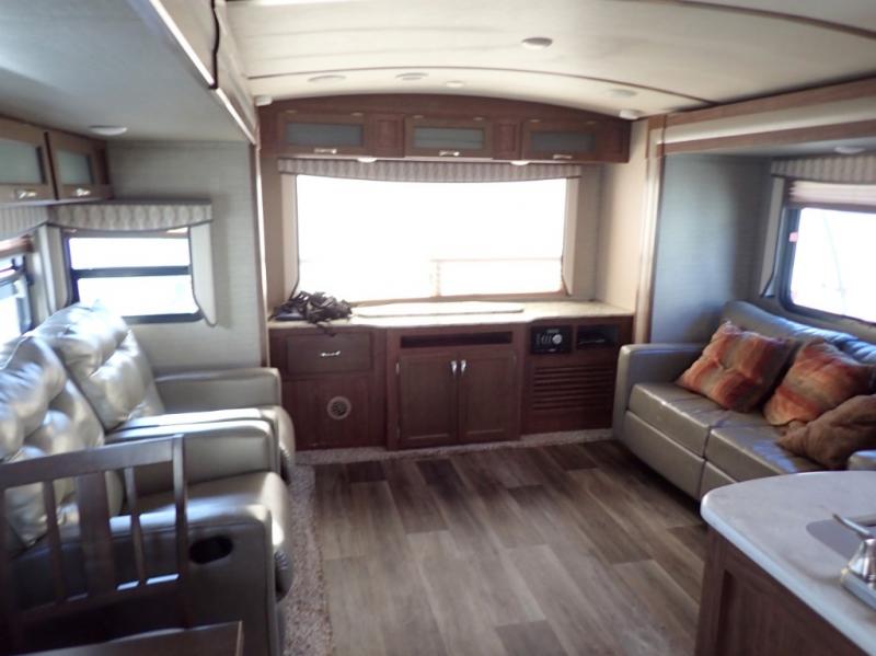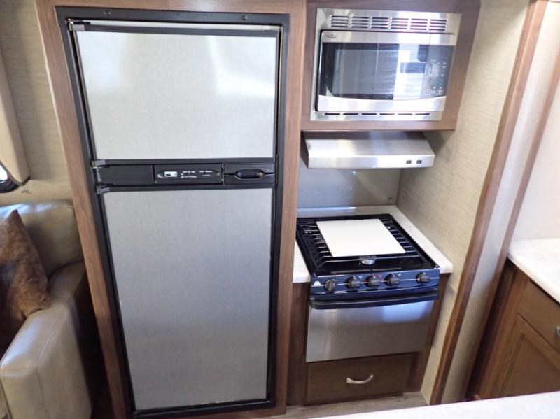 You should be looking at this Aerolite Luxury Class 298RESL travel trailer by Dutchmen RV for your next road trip. It features dual opposing slide outs in the combined living/kitchen area, a rear entertainment center, and a kitchen peninsula.