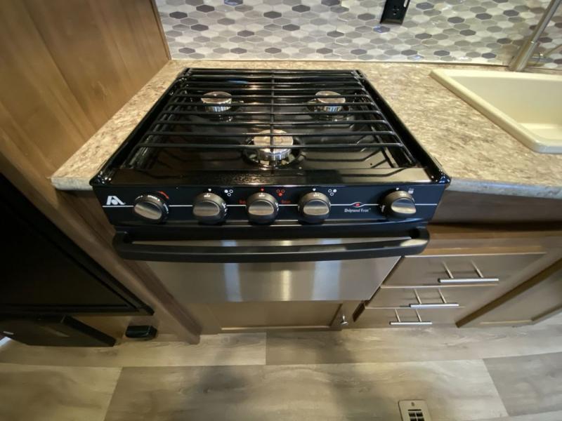 Thinking about finding the perfect family travel trailer? This Aspen Trail 2710BHWE might just complete the "must have" list to make everyone happy and comfortable. The kids will have the choice to sleep on the double size bunk beds with a privacy curtain, or the furniture once folded down for the evening. And you and your spouse will have a master bedroom all to yourselves. The kitchen appliances allow you to make meals and snacks to keep everyone fueled for the family hike each day. You have a full bathroom including a tub/shower for everyone to get cleaned up before dinner and bedtime. There is even a place to store your hiking poles, charcoal, and outdoor gear in the mega storage.