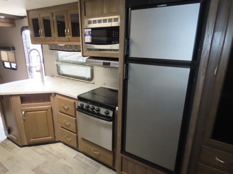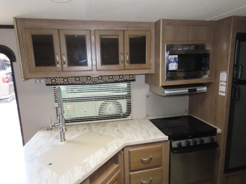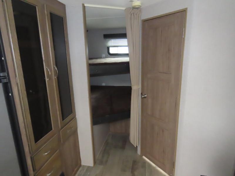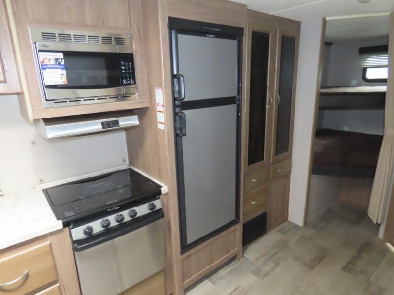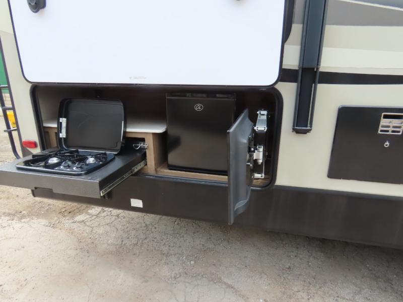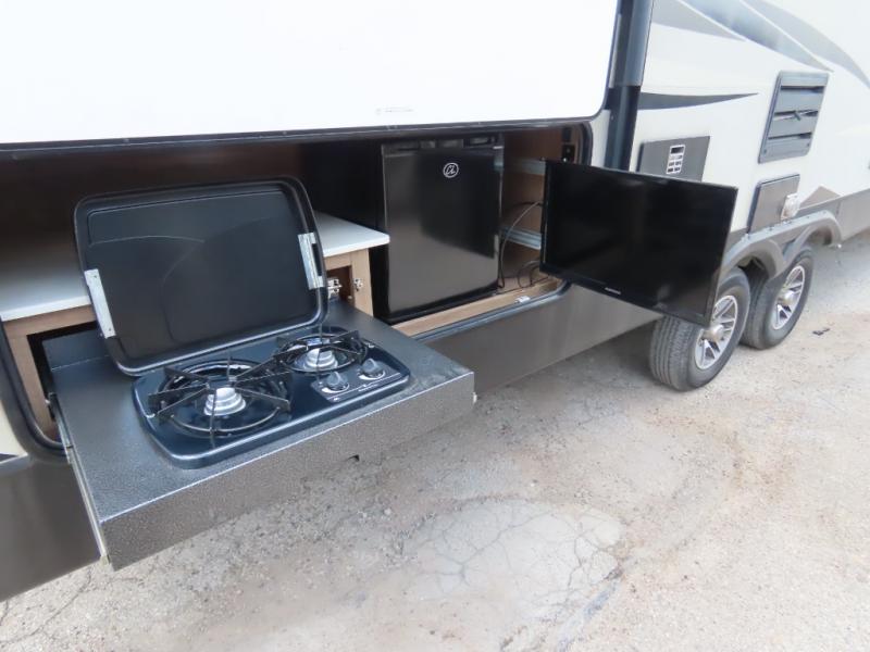 Your large family will love this Dutchmen Atlas travel trailer model 2912BH. You can choose to cook inside or out with the convenience of an outdoor kitchen beneath the double bed bunks in back. Here, you will find a refrigerator and a two burner cook-top so you can easily enjoy the fresh air outdoors while you prepare and enjoy your meal if you like. At bedtime, there is plenty of room for at least eight individuals to get a good night's sleep. If you have little ones, you will appreciate the close bathroom accommodations right next door to the bunks for them. A large slide in the living area will keep the space feeling open and inviting with room for the whole gang. You can also enjoy the outdoor living space provided when you open up the adjustable electric awning with LED lighting that makes even nighttime activities super fun!