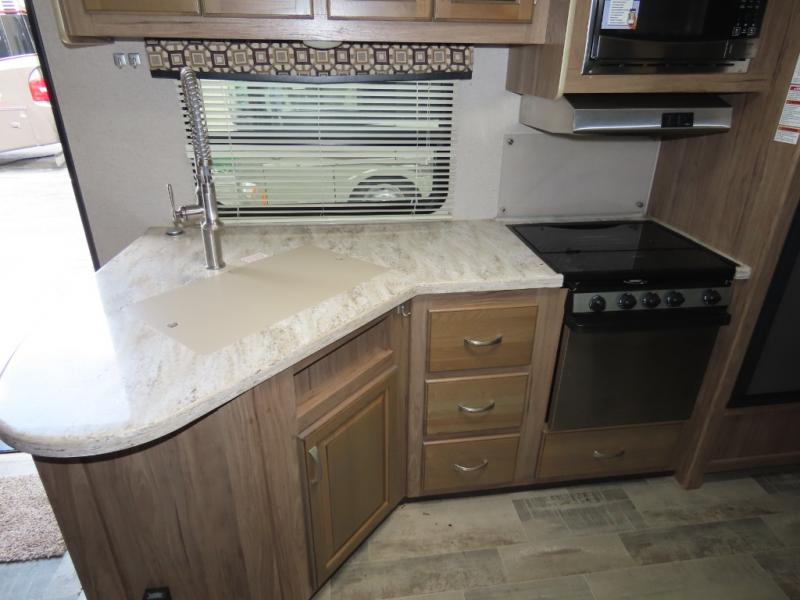 All of the Dutchmen Atlas models feature a 3-year limited structural warranty so you can enjoy camping with peace of mind knowing your investment is protected. These units also feature a heated and enclosed underbelly which extends your camping season into much cooler weather. Some of the interior features that are sure to draw your attention are the solid surface countertops including a pop-up outlet which has two USB ports as well as two standard plugs, efficient LED lighting including motion sensor accent lights, a residential pull-down spray faucet, as well as a skylight for bringing in more natural light from outdoors. On the outside, you will appreciate the adjustable electric awning with LED lighting as well as outdoor speakers for daytime and evening fun, plus the benefit of an outdoor spray port so you don't have to track in a mess if you or your furry friend gets dirty while playing outside, plus so much more!