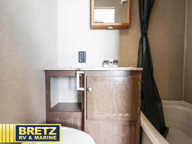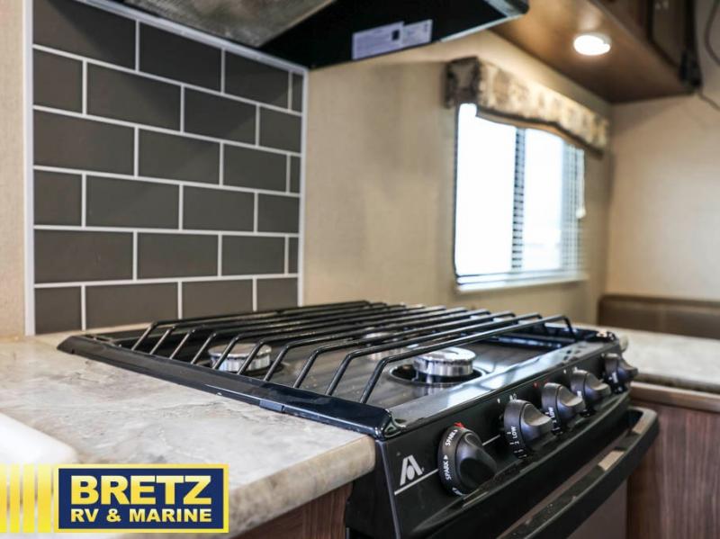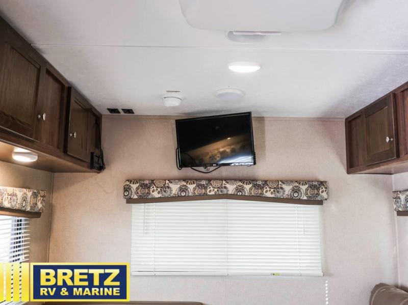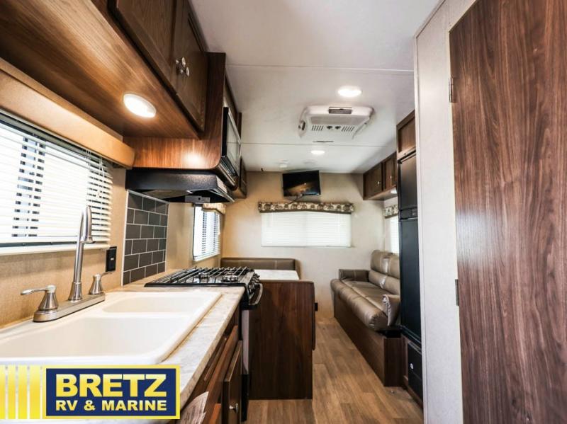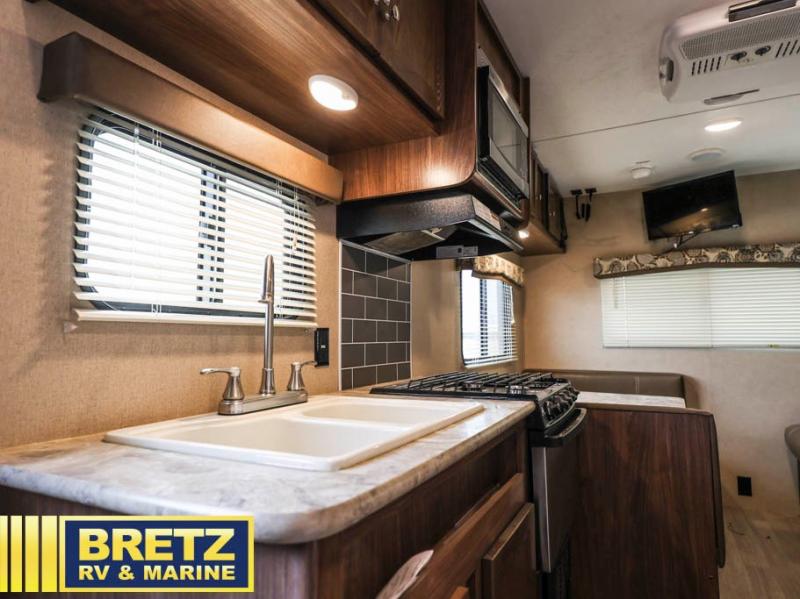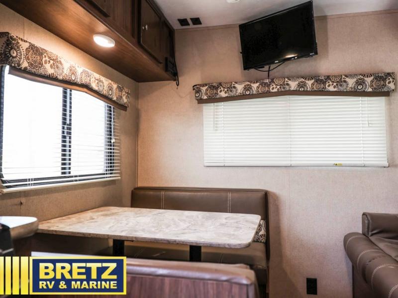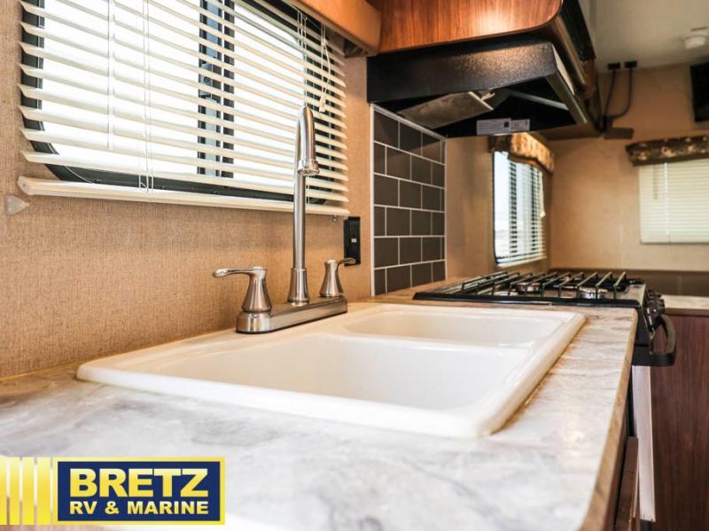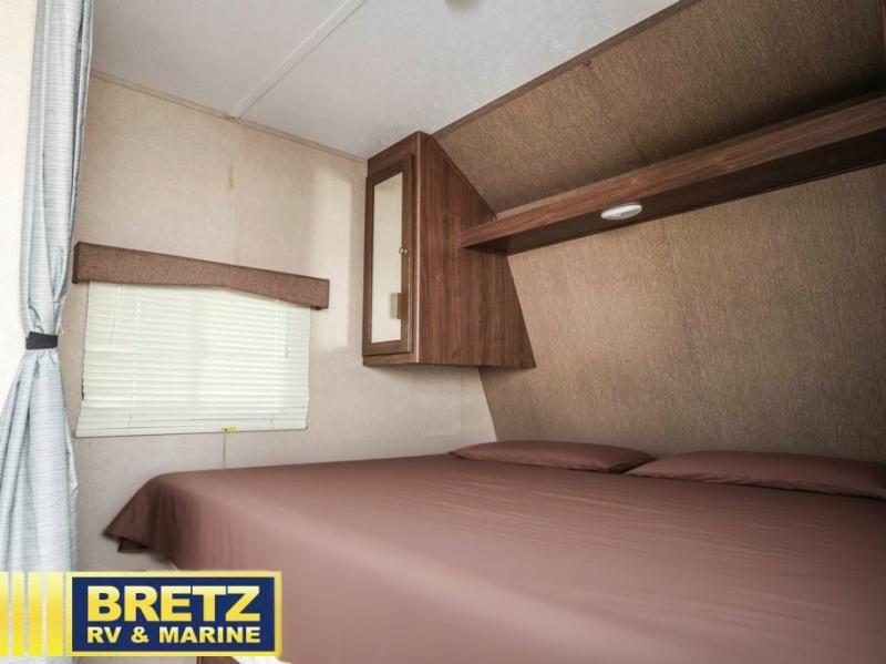 Just imagine having fun at the state park and being able to stay overnight with your own accommodations. You can make meals, eat at the dinette or sofa, and you can relax under the awning. There is a full bathroom so you can skip the public facitlies which is quiet convenient at night. You will find a queen bed, storage and USB connections in the front bedroom. This Coleman Lantern 202RD is the perfect travel trailer for a couple or smaller family. Check it out and you will see why!