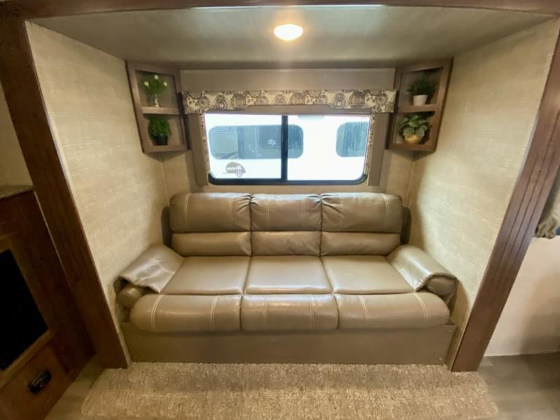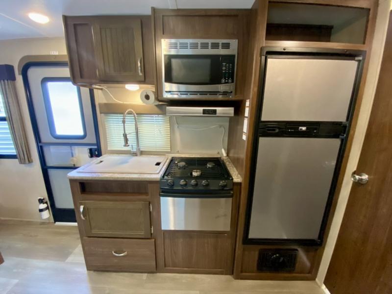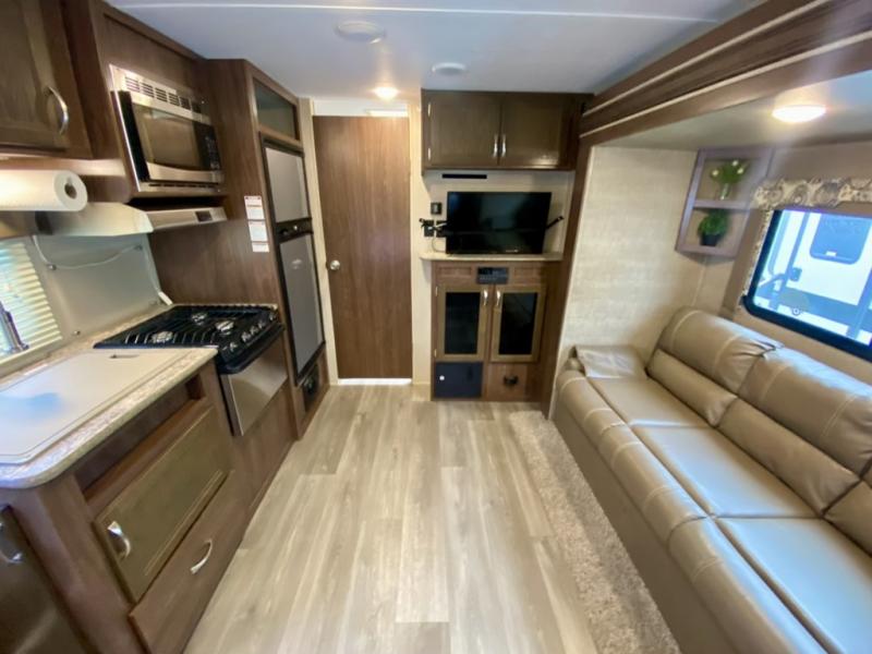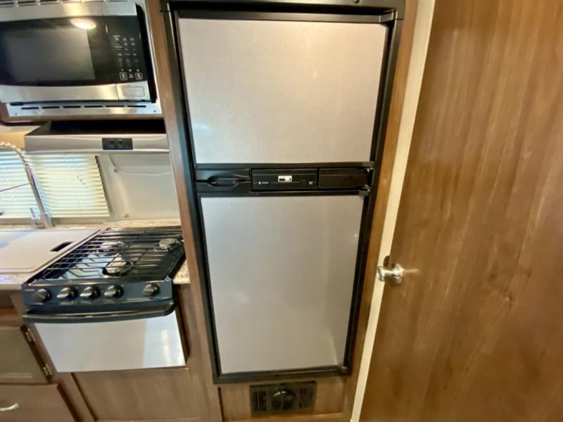 Take one look inside this Coleman Light 1805RB travel trailer and you will throw away your tent. From the handy indoor/outdoor table that can be placed in several locations including in front of the single slide out fold-down sofa to your own bed with storage for your clothing to the rear full bathroom to keep you clean the whole trip, you will find something to enjoy about this trailer each time you take it out of storage. Step inside, you will be happy you did.